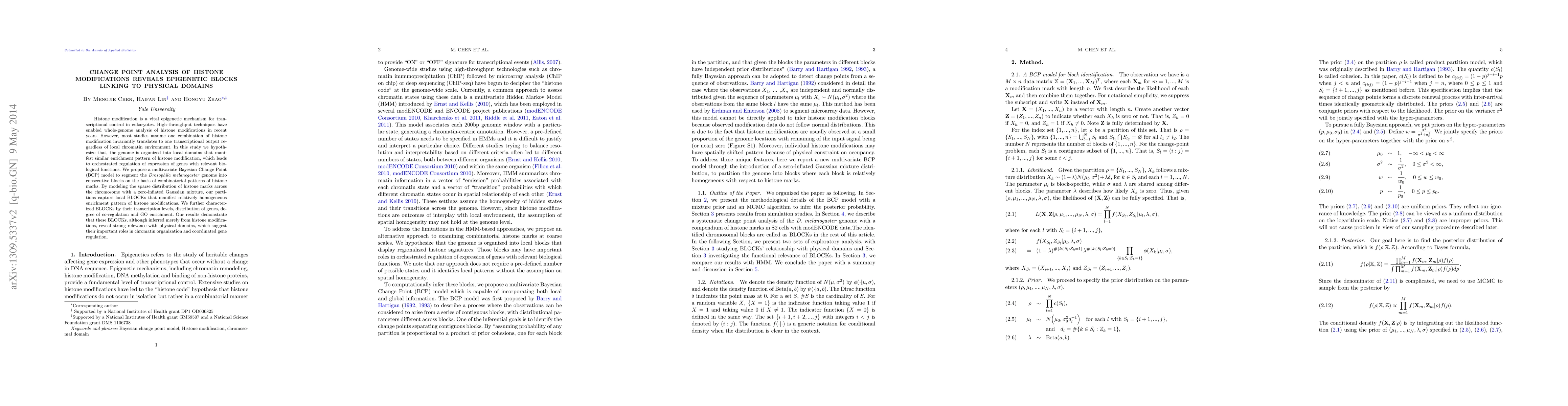 This study uses a multivariate Bayesian Change Point model to identify local genomic domains (BLOCKs) in Drosophila melanogaster based on histone modification patterns, showing these domains correlate with physical domains and suggest roles in coordinated gene regulation and chromatin organization.