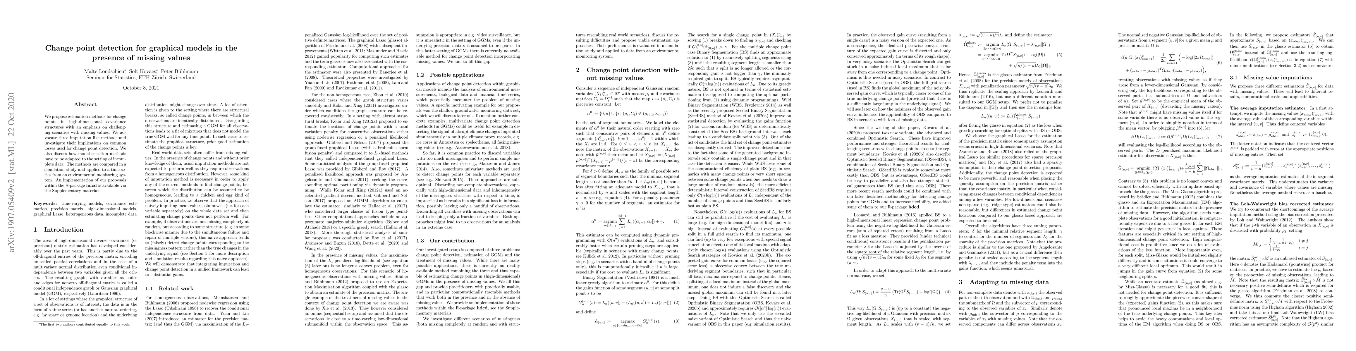 The work stands out by addressing change point detection in high-dimensional graphical models with missing values, proposing novel imputation methods, and providing a robust model selection procedure.