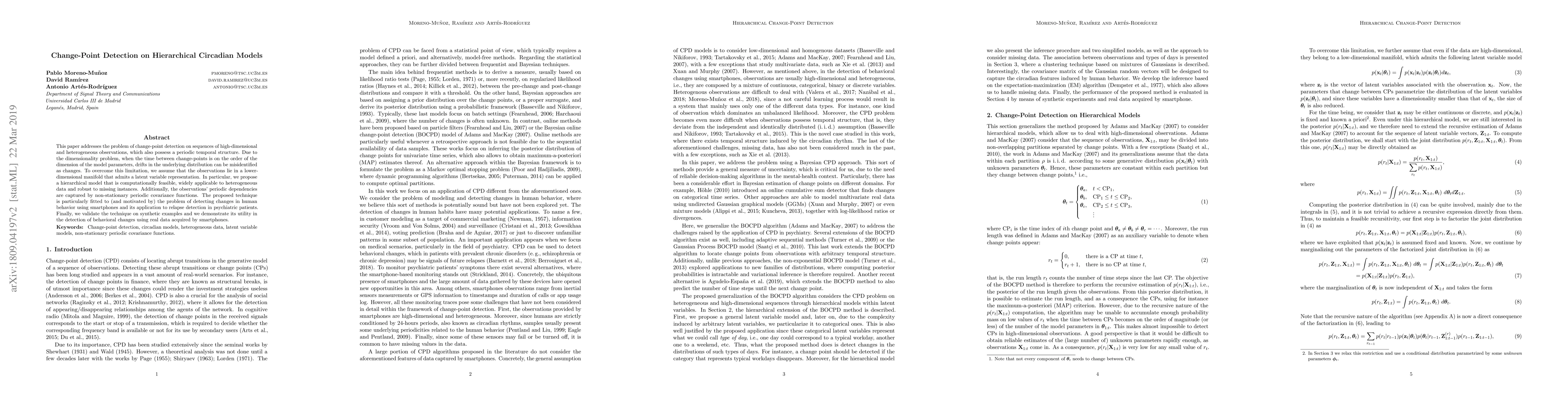 This paper addresses the problem of change-point detection on sequences of high-dimensional and heterogeneous observations, which also possess a periodic temporal structure. Due to the dimensionality problem, when the time between change-points is on the order of the dimension of the model parameters, drifts in the underlying distribution can be misidentified as changes. To overcome this limitation, we assume that the observations lie in a lower-dimensional manifold that admits a latent variable representation. In particular, we propose a hierarchical model that is computationally feasible, widely applicable to heterogeneous data and robust to missing instances. Additionally, the observations' periodic dependencies are captured by non-stationary periodic covariance functions. The proposed technique is particularly fitted to (and motivated by) the problem of detecting changes in human behavior using smartphones and its application to relapse detection in psychiatric patients. Finally, we validate the technique on synthetic examples and we demonstrate its utility in the detection of behavioral changes using real data acquired by smartphones.
