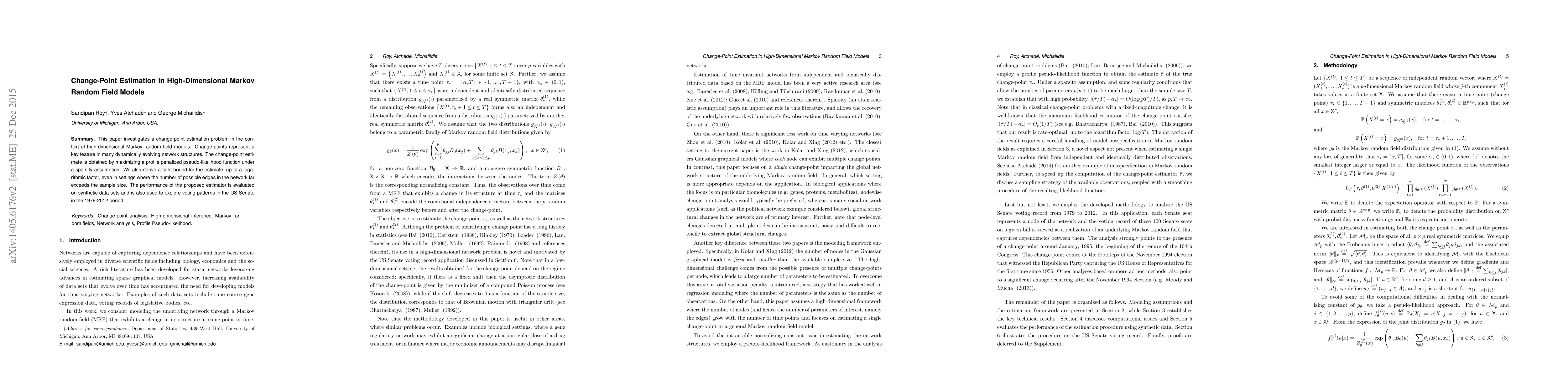 This paper proposes a method for estimating change-points in high-dimensional Markov Random Field models by maximizing a penalized pseudo-likelihood function under sparsity, and derives a tight bound for the estimate. The method is evaluated on synthetic data and applied to analyze voting patterns in the US Senate from 1979 to 2012.