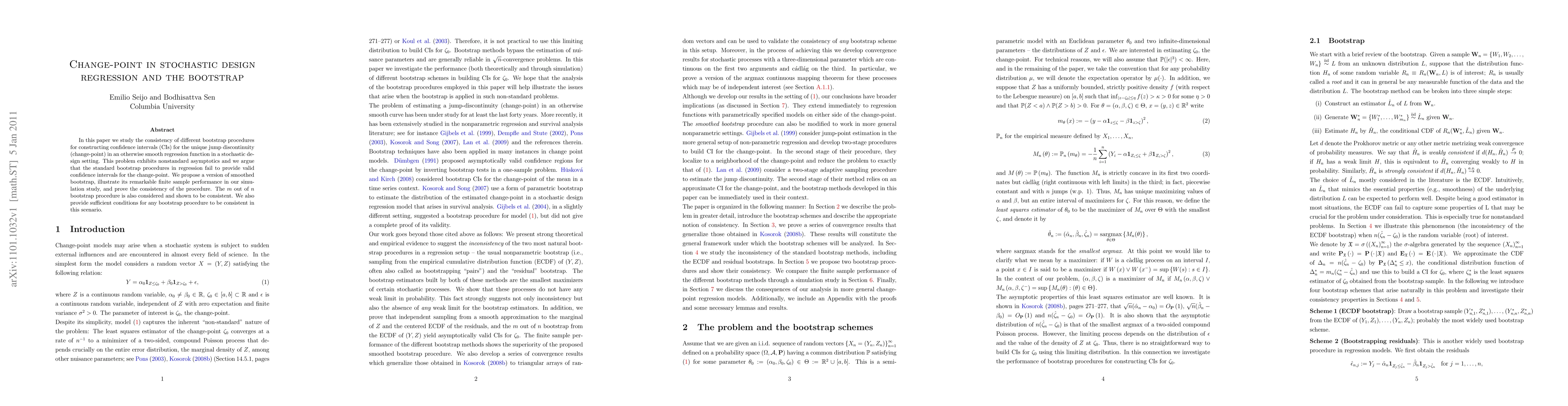 This paper investigates the consistency of bootstrap methods for constructing confidence intervals for a change-point in a regression function under stochastic design. It finds that standard bootstrap procedures are inadequate and proposes a smoothed bootstrap approach, demonstrating its effectiveness through simulations and proving its consistency.