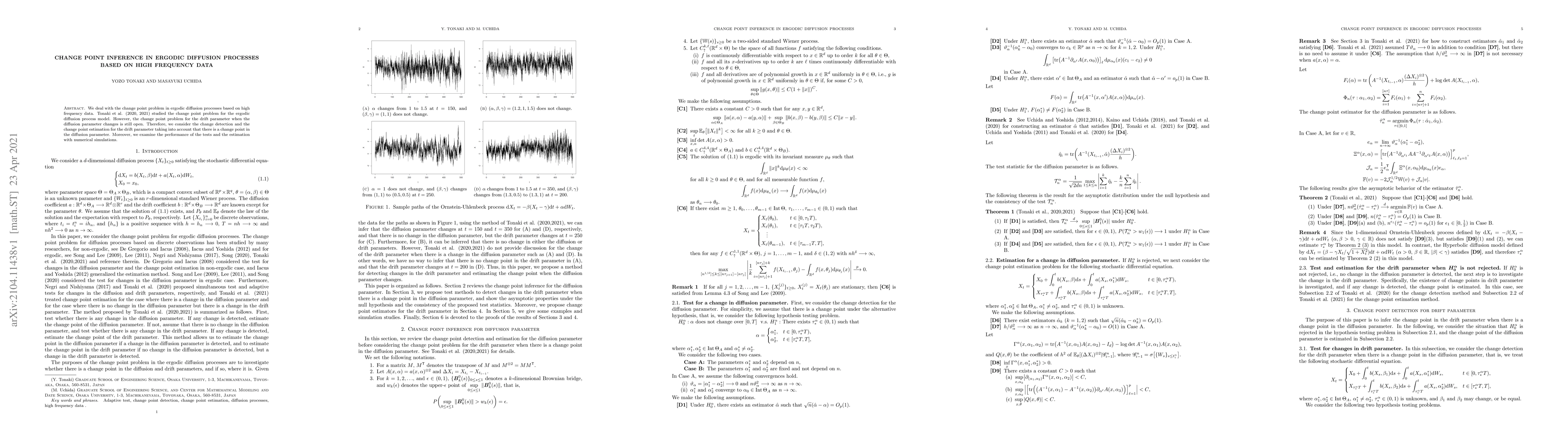 This paper addresses the change point problem in ergodic diffusion processes using high-frequency data, focusing on detecting and estimating changes in the drift parameter while accounting for potential changes in the diffusion parameter. The study evaluates the performance of proposed methods through numerical simulations.