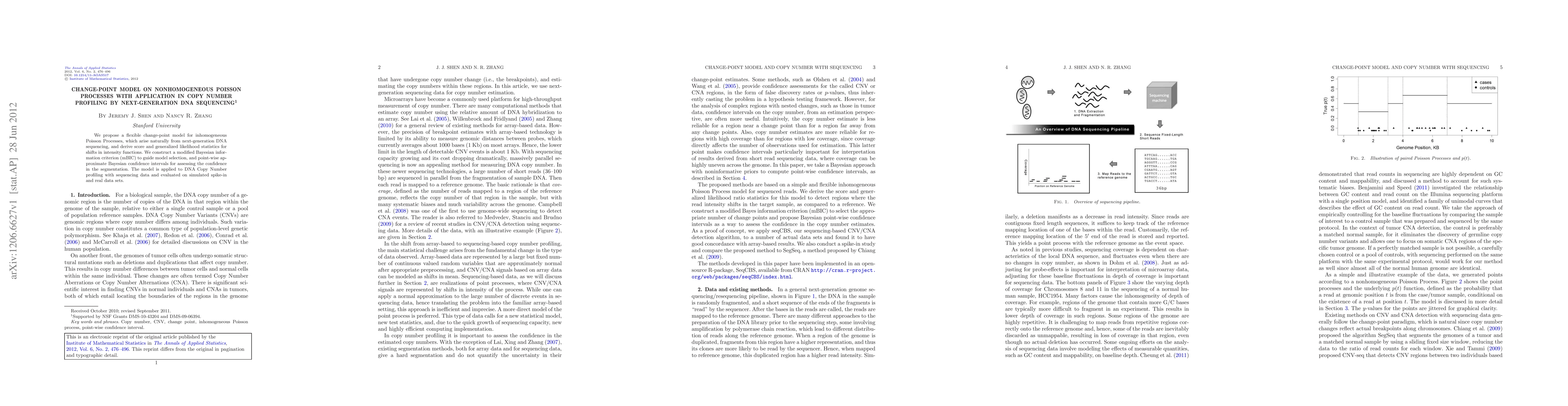 This paper proposes a change-point model for inhomogeneous Poisson processes from next-generation DNA sequencing, deriving score and likelihood statistics for detecting shifts. It applies the model to DNA Copy Number profiling, evaluating it on both simulated and real data sets.