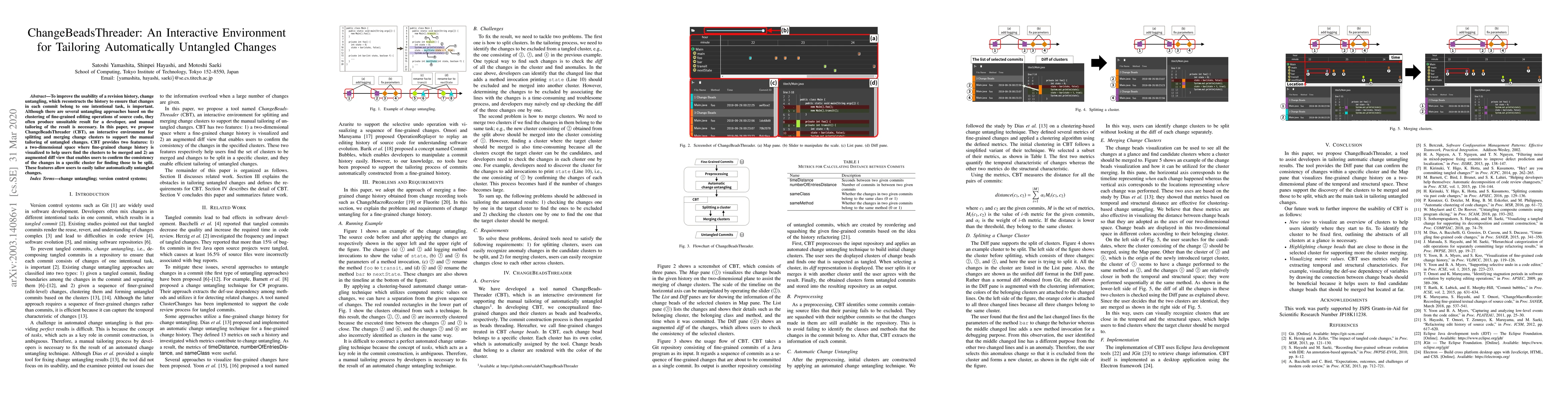 ChangeBeadsThreader (CBT) is an interactive environment designed to assist developers in manually tailoring automatically untangled changes in revision history. It features a two-dimensional visualization of fine-grained change history and an augmented diff view to confirm change consistency, facilitating effective clustering adjustments.