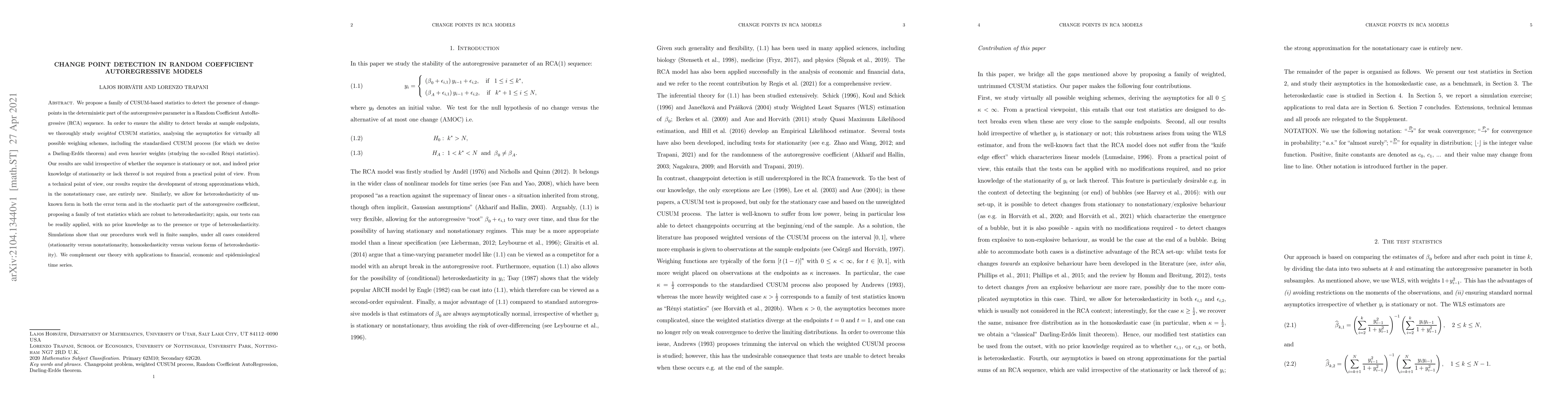 We propose a family of CUSUM-based statistics to detect the presence of changepoints in the deterministic part of the autoregressive parameter in a Random Coefficient AutoRegressive (RCA) sequence. In order to ensure the ability to detect breaks at sample endpoints, we thoroughly study weighted CUSUM statistics, analysing the asymptotics for virtually all possible weighing schemes, including the standardised CUSUM process (for which we derive a Darling-Erdos theorem) and even heavier weights (studying the so-called R\'enyi statistics). Our results are valid irrespective of whether the sequence is stationary or not, and no prior knowledge of stationarity or lack thereof is required. Technically, our results require strong approximations which, in the nonstationary case, are entirely new. Similarly, we allow for heteroskedasticity of unknown form in both the error term and in the stochastic part of the autoregressive coefficient, proposing a family of test statistics which are robust to heteroskedasticity, without requiring any prior knowledge as to the presence or type thereof. Simulations show that our procedures work very well in finite samples. We complement our theory with applications to financial, economic and epidemiological time series.