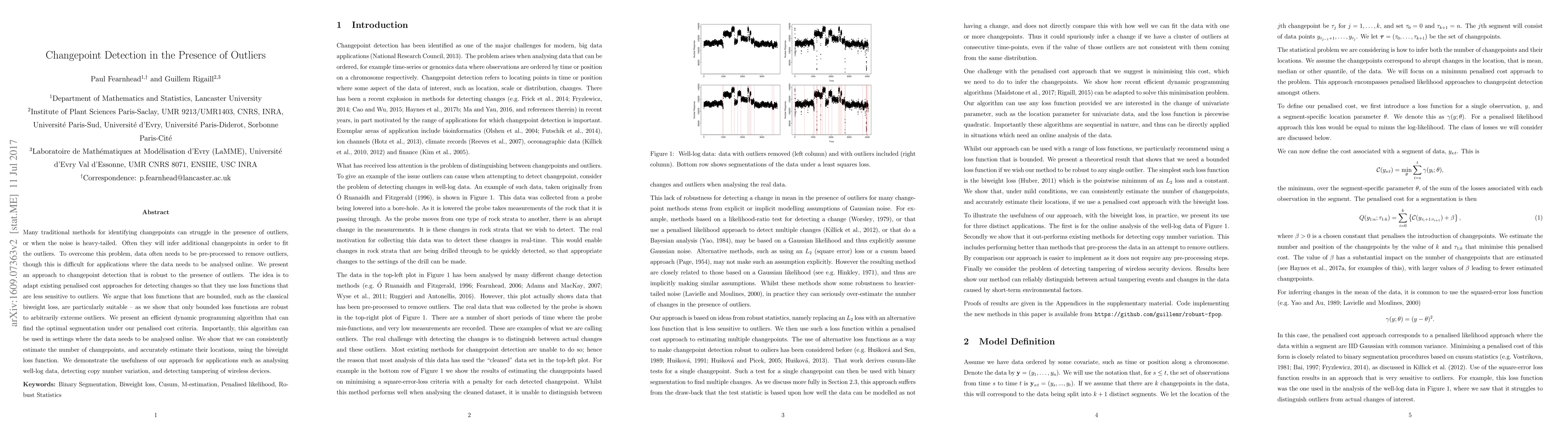 This paper proposes a robust changepoint detection method using bounded loss functions, specifically the biweight loss, to handle outliers effectively. An efficient dynamic programming algorithm is introduced for online data analysis, demonstrating consistent estimation of changepoints in applications like well-log data analysis and wireless device tampering detection.