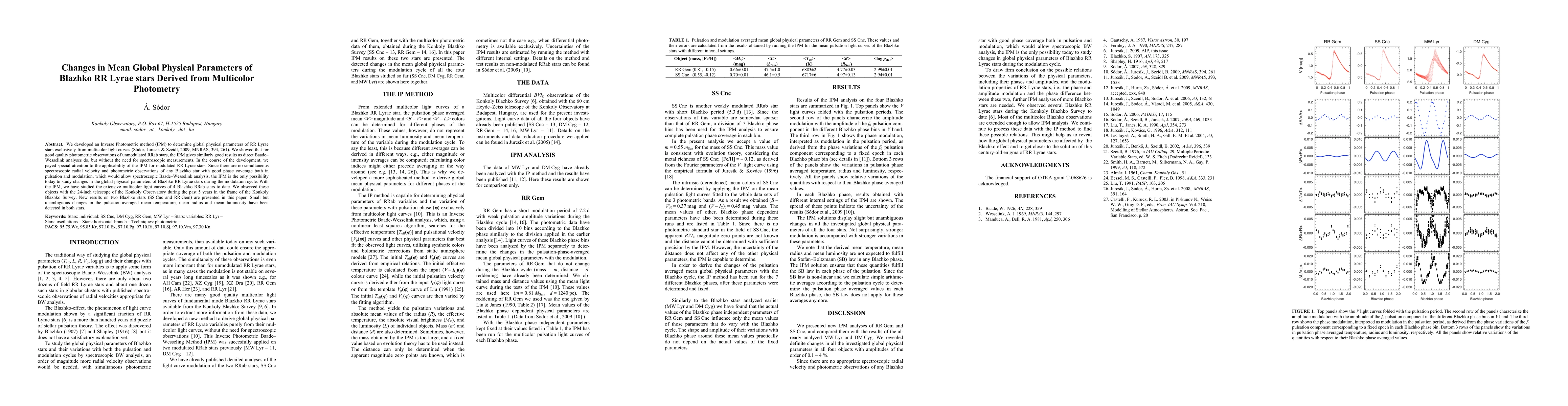 We developed an Inverse Photometric method (IPM) to determine global physical parameters of RR Lyrae stars exclusively from multicolor light curves (S\'odor, Jurcsik & Szeidl, 2009, MNRAS, 394, 261). We showed that for good quality photometric observations of unmodulated RRab stars, the IPM gives similarly good results as direct Baade-Wesselink analyses do, but without the need for spectroscopic measurements. In the course of the development, we payed special attention to the applicability of the IPM for modulated RR Lyrae stars. Since there is no simultaneous spectroscopic radial velocity and photometric observations of any Blazhko star with good phase coverage both in pulsation and modulation, which would allow spectroscopic Baade-Wesselink analysis, the IPM is the only possibility today to study changes in the global physical parameters of Blazhko RR Lyrae stars during the modulation cycle. With the IPM, we have studied the extensive multicolor light curves of 4 Blazhko RRab stars we observed with the 24-inch telescope of the Konkoly Observatory during the past 5 years in the frame of the Konkoly Blazhko Survey. Small but unambiguous changes in the pulsation-averaged mean temperature, mean radius and mean luminosity have been detected in each star. Results on these Blazhko stars (SS Cnc, DM Cyg, RR Gem, and MW Lyr) are shown in this paper.
