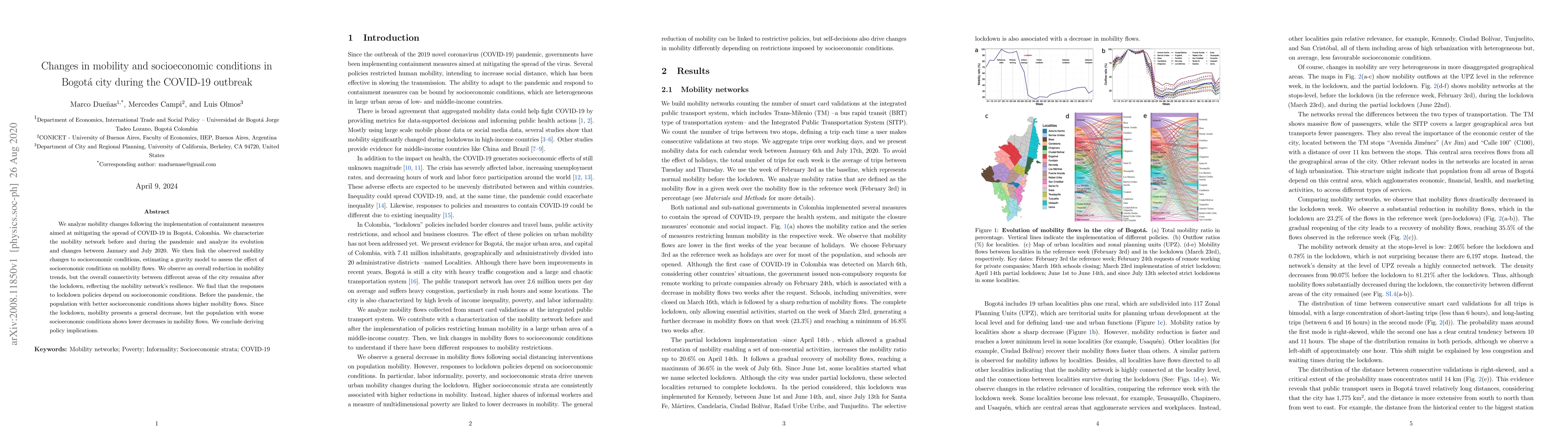 This study examines mobility changes in Bogotá during the COVID-19 pandemic, finding a general reduction in mobility with persistent connectivity. It reveals that socioeconomic conditions significantly influence mobility responses to lockdown policies, with lower decreases in mobility observed among those with worse socioeconomic conditions.