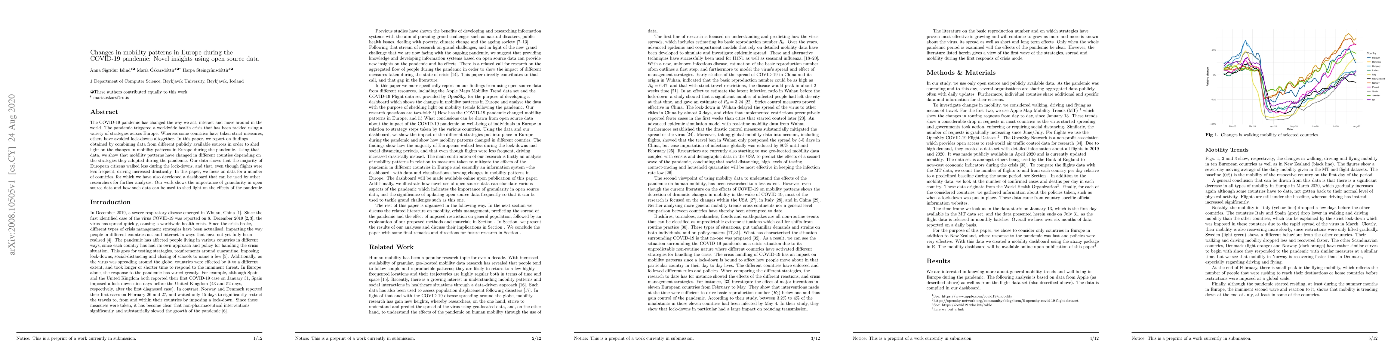 This study analyzed open-source data to reveal how European mobility patterns changed during the COVID-19 pandemic. It found that people walked less and drove more during lockdowns in some countries, while others saw no change or increased flights.