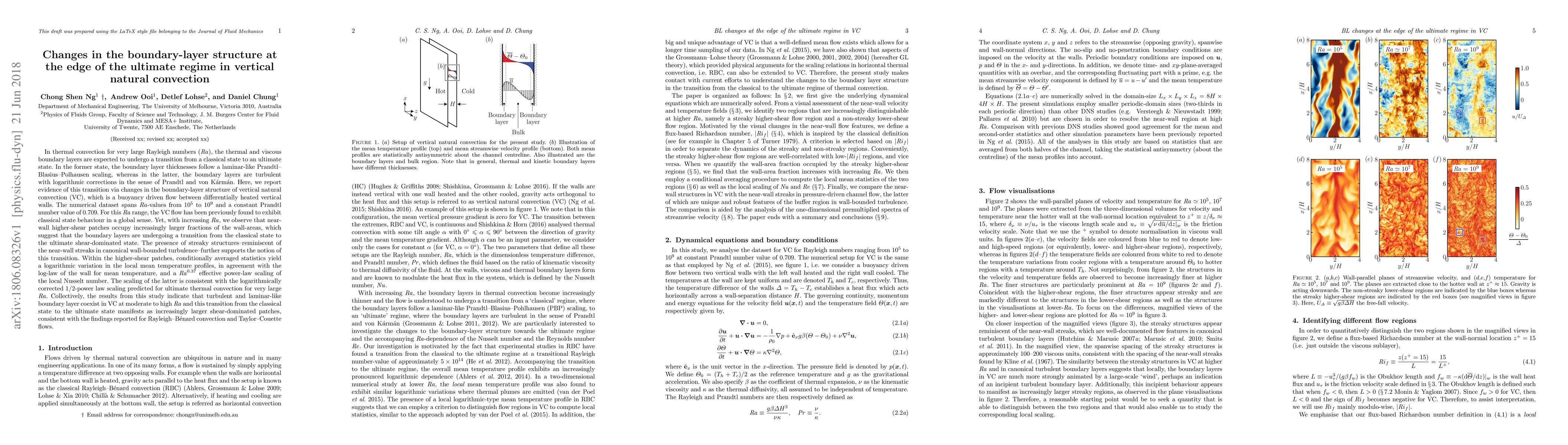 This study investigates the transition from a classical to an ultimate regime in vertical natural convection, observing changes in boundary-layer structure for Rayleigh numbers ranging from $10^5$ to $10^9$. Evidence of this transition includes the emergence of higher-shear patches and streaky structures, indicating a shift towards a turbulent, shear-dominated state.