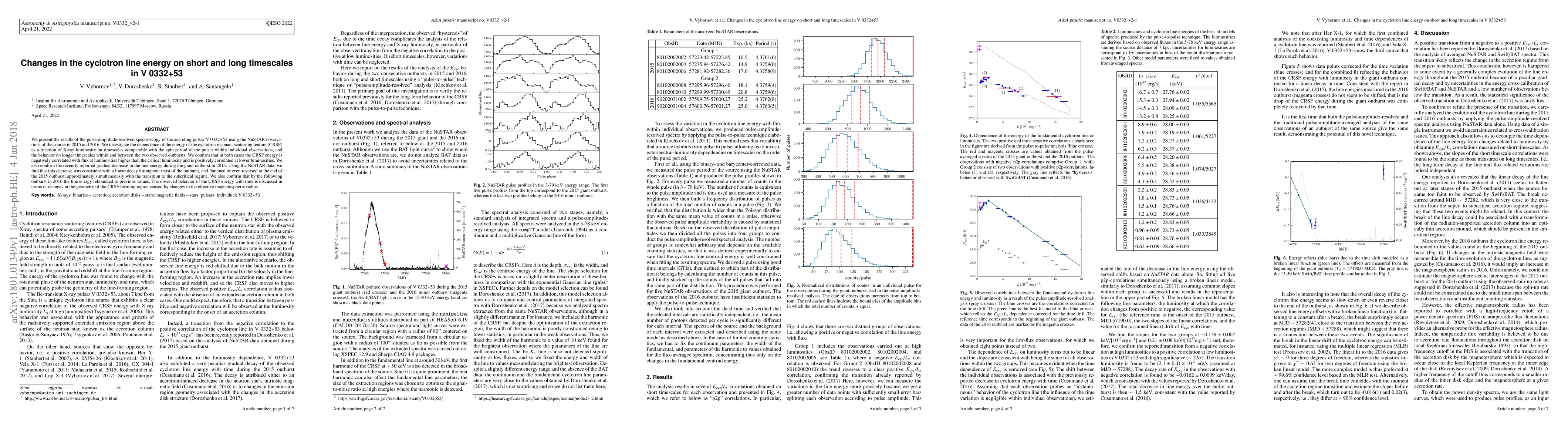 The energy of cyclotron resonant scattering feature in V 0332+53 pulsar changed significantly over short and long timescales, with a negative correlation with flux at high luminosities and a positive correlation at lower luminosities.