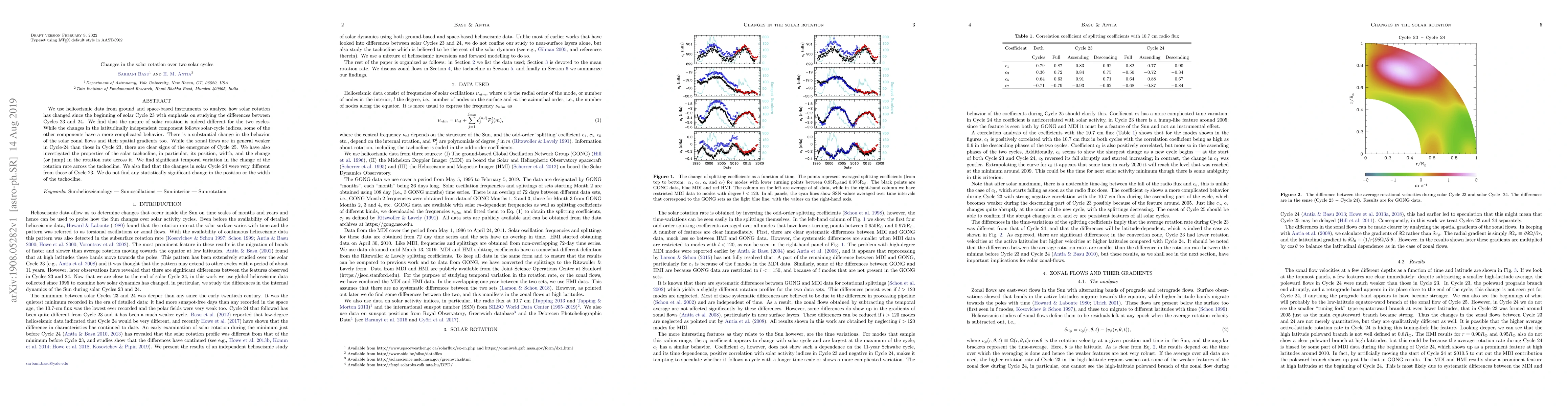 Solar rotation changed significantly between Solar Cycles 23 and 24, with weaker zonal flows in Cycle 24 and a new cycle emerging, but no change in tachocline position or width.