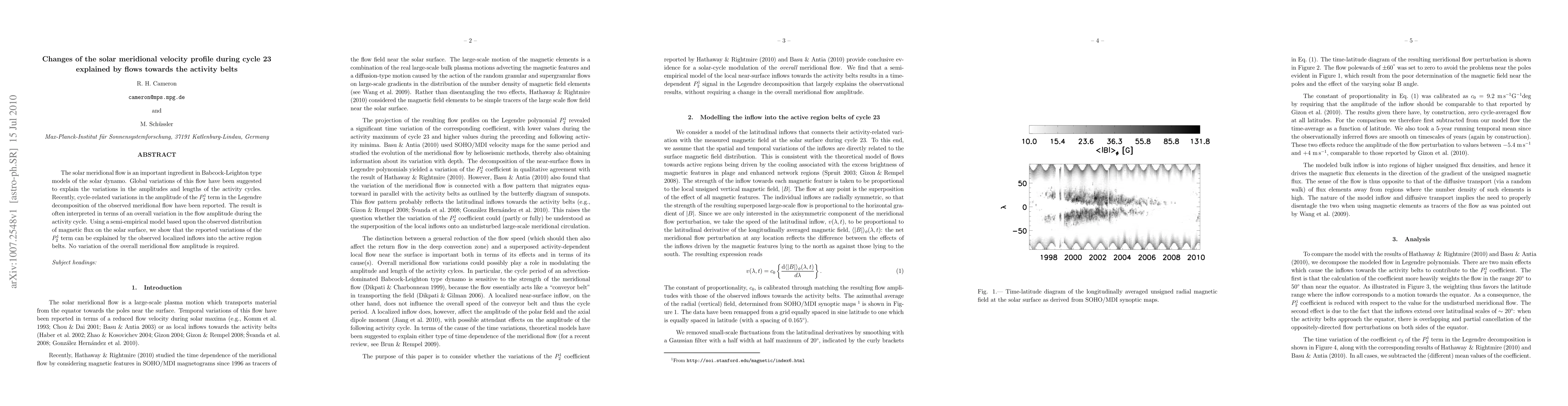 This paper demonstrates that variations in the solar meridional flow during cycle 23 can be explained by localized inflows towards active region belts, without requiring a change in the overall flow amplitude. The findings support the idea that these inflows influence the solar dynamo model.