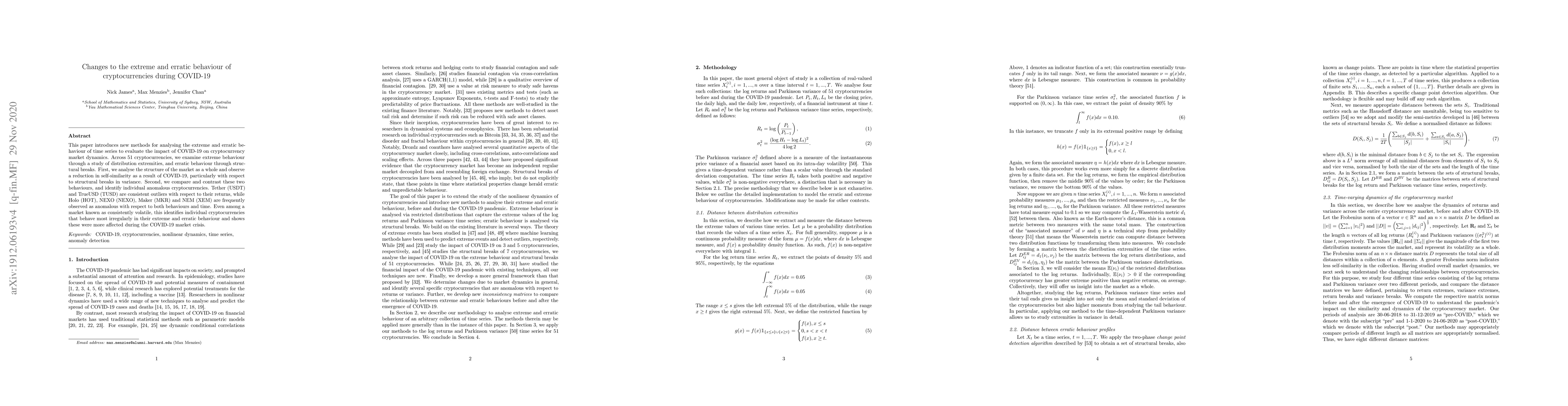 This paper introduces new methods for analysing the extreme and erratic behaviour of time series to evaluate the impact of COVID-19 on cryptocurrency market dynamics. Across 51 cryptocurrencies, we examine extreme behaviour through a study of distribution extremities, and erratic behaviour through structural breaks. First, we analyse the structure of the market as a whole and observe a reduction in self-similarity as a result of COVID-19, particularly with respect to structural breaks in variance. Second, we compare and contrast these two behaviours, and identify individual anomalous cryptocurrencies. Tether (USDT) and TrueUSD (TUSD) are consistent outliers with respect to their returns, while Holo (HOT), NEXO (NEXO), Maker (MKR) and NEM (XEM) are frequently observed as anomalous with respect to both behaviours and time. Even among a market known as consistently volatile, this identifies individual cryptocurrencies that behave most irregularly in their extreme and erratic behaviour and shows these were more affected during the COVID-19 market crisis.