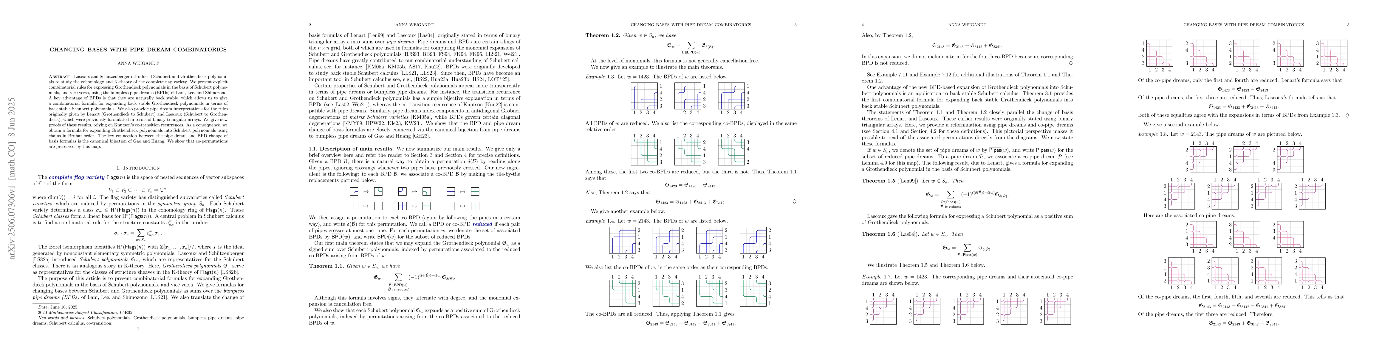 Lascoux and Sch\"utzenberger introduced Schubert and Grothendieck polynomials to study the cohomology and K-theory of the complete flag variety. We present explicit combinatorial rules for expressing Grothendieck polynomials in the basis of Schubert polynomials, and vice versa, using the bumpless pipe dreams (BPDs) of Lam, Lee, and Shimozono. A key advantage of BPDs is that they are naturally back stable, which allows us to give a combinatorial formula for expanding back stable Grothendieck polynomials in terms of back stable Schubert polynomials. We also provide pipe dream interpretations for the rules originally given by Lenart (Grothendieck to Schubert) and Lascoux (Schubert to Grothendieck), which were previously formulated in terms of binary triangular arrays. We give new proofs of these results, relying on Knutson's co-transition recurrences. As a consequence, we obtain a formula for expanding Grothendieck polynomials into Schubert polynomials using chains in Bruhat order. The key connection between the pipe dream and BPD change of basis formulas is the canonical bijection of Gao and Huang. We show that co-permutations are preserved by this map.