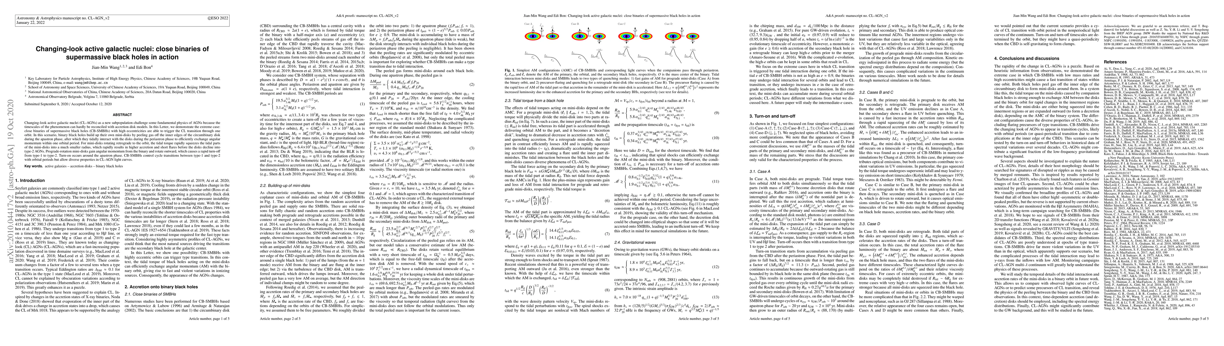 This paper explores the phenomenon of changing-look active galactic nuclei (CL-AGNs) and proposes that close binaries of supermassive black holes (CB-SMBHs) with high eccentricities can trigger CL transitions within a single orbit. The study suggests that tidal interactions during the periastron phase can rapidly change the accretion states, leading to type-1 to type-2 AGN transitions.