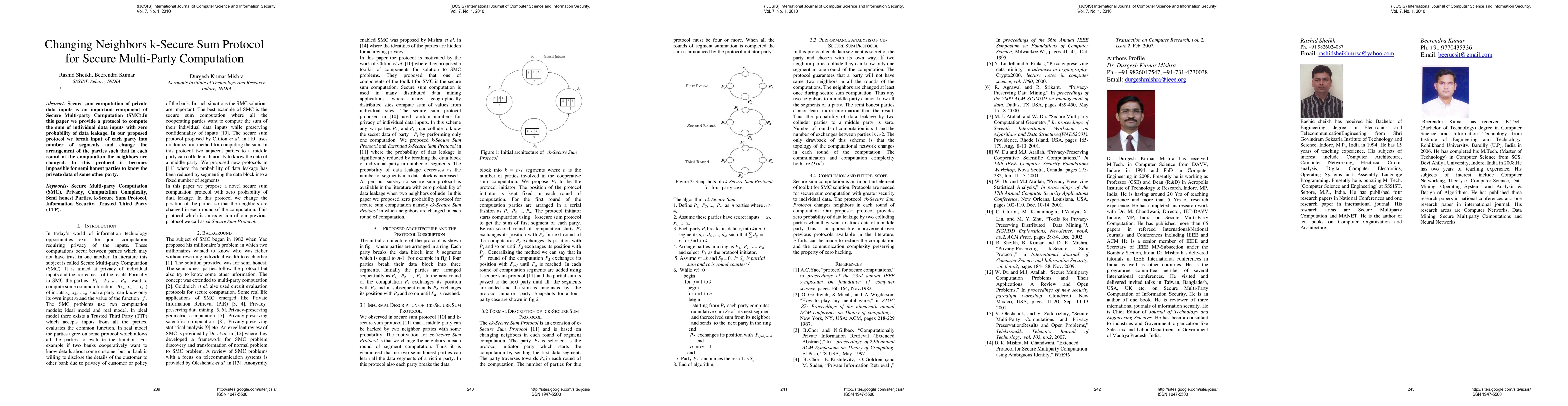 This paper introduces a novel protocol for secure multi-party computation (SMC) that ensures the sum of private inputs is computed without any data leakage. The protocol segments each party's input and changes neighbors in each round, preventing any party from learning others' private data.
