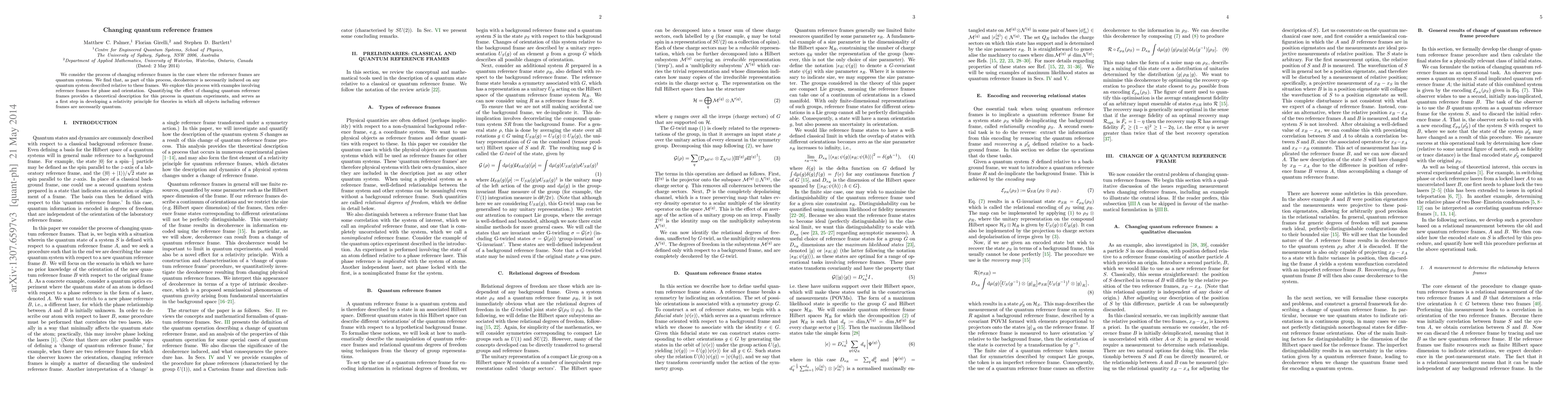 This paper investigates the phenomenon of changing quantum reference frames, demonstrating that decoherence occurs as a necessary consequence. It explores examples involving phase and orientation and suggests that quantifying these effects is crucial for developing a relativity principle applicable to quantum theories.