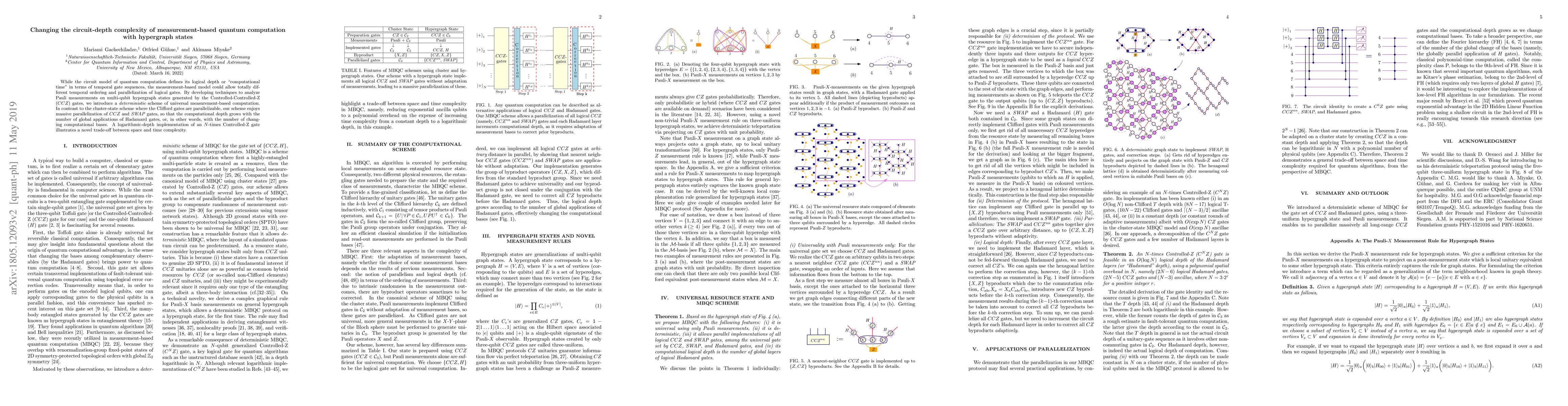 While the circuit model of quantum computation defines its logical depth or "computational time" in terms of temporal gate sequences, the measurement-based model could allow totally different temporal ordering and parallelization of logical gates. By developing techniques to analyze Pauli measurements on multi-qubit hypergraph states generated by the Controlled-Controlled-Z (CCZ) gates, we introduce a deterministic scheme of universal measurement-based computation. In contrast to the cluster-state scheme, where the Clifford gates are parallelizable, our scheme enjoys massive parallelization of CCZ and SWAP gates, so that the computational depth grows with the number of global applications of Hadamard gates, or, in other words, with the number of changing computational bases. A logarithmic-depth implementation of an N-times Controlled-Z gate illustrates a novel trade-off between space and time complexity.