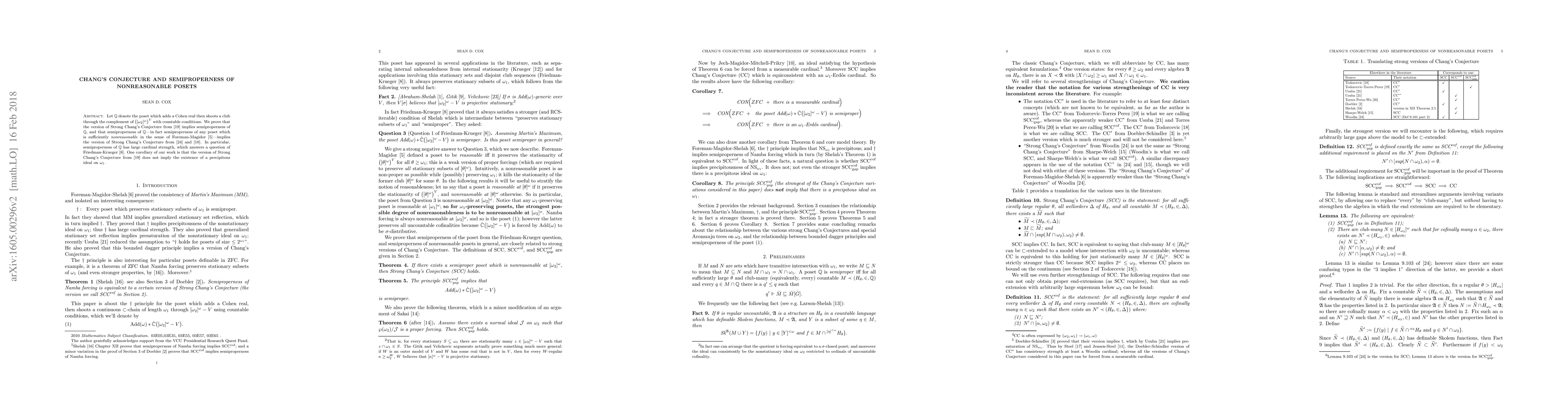 Let $\mathbb{Q}$ denote the poset which adds a Cohen real then shoots a club through the complement of $\big( [\omega_2]^\omega \big)^V$ with countable conditions. We prove that the version of Strong Chang's Conjecture from \cite{MR2965421} implies semiproperness of $\mathbb{Q}$, and that semiproperness of $\mathbb{Q}$---in fact semiproperness of any poset which is sufficiently \emph{nonreasonable} in the sense of Foreman-Magidor~\cite{MR1359154}---implies the version of Strong Chang's Conjecture from \cite{MR2723878} and \cite{MR1261218}. In particular, semiproperness of $\mathbb{Q}$ has large cardinal strength, which answers a question of Friedman-Krueger~\cite{MR2276627}. One corollary of our work is that the version of Strong Chang's Conjecture from \cite{MR2965421} does not imply the existence of a precipitous ideal on $\omega_1$.