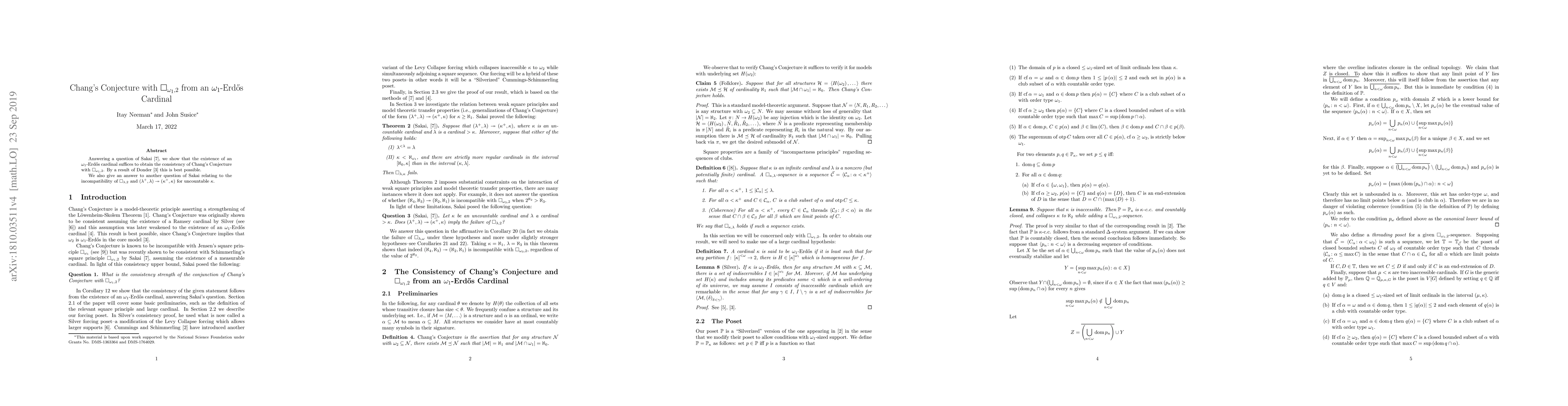 The paper employs set-theoretic techniques, specifically focusing on large cardinals and forcing to analyze Chang's Conjecture in conjunction with square sequences.