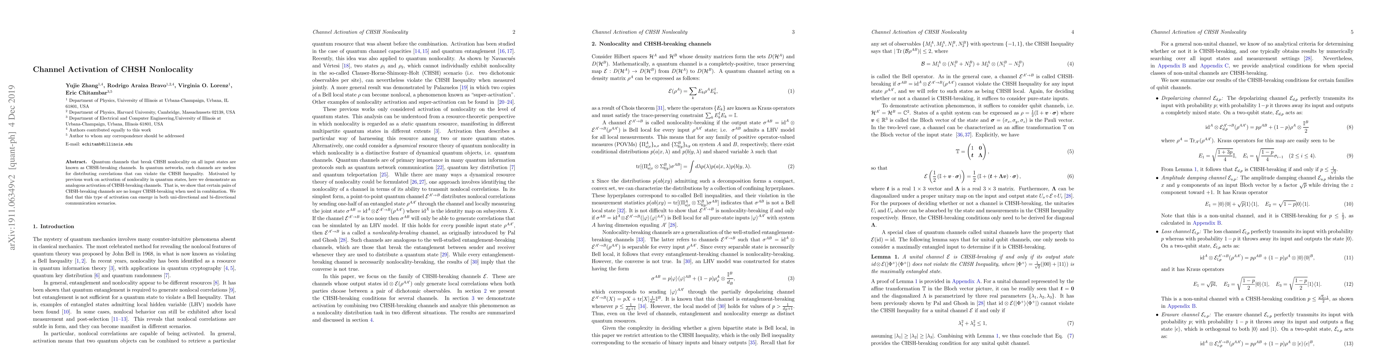 This paper demonstrates that certain pairs of CHSH-breaking quantum channels regain the ability to violate the CHSH inequality when used in combination, showing that nonlocality can be activated in both uni-directional and bi-directional communication scenarios.