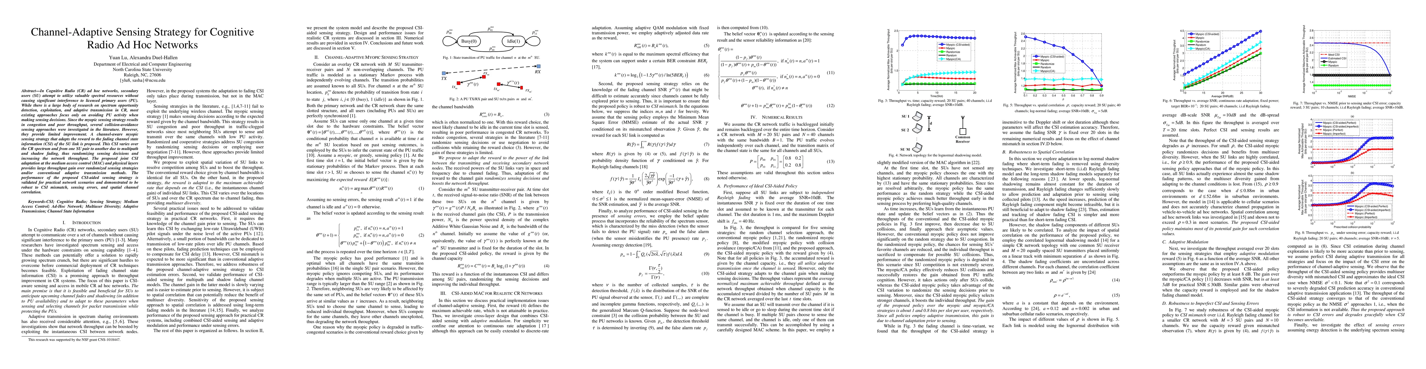This paper proposes a channel-aware sensing strategy for Cognitive Radio ad hoc networks that adapts the reward based on fading channel state information to enhance throughput. The approach provides significant throughput gains compared to conventional methods and is shown to be robust to various practical challenges.