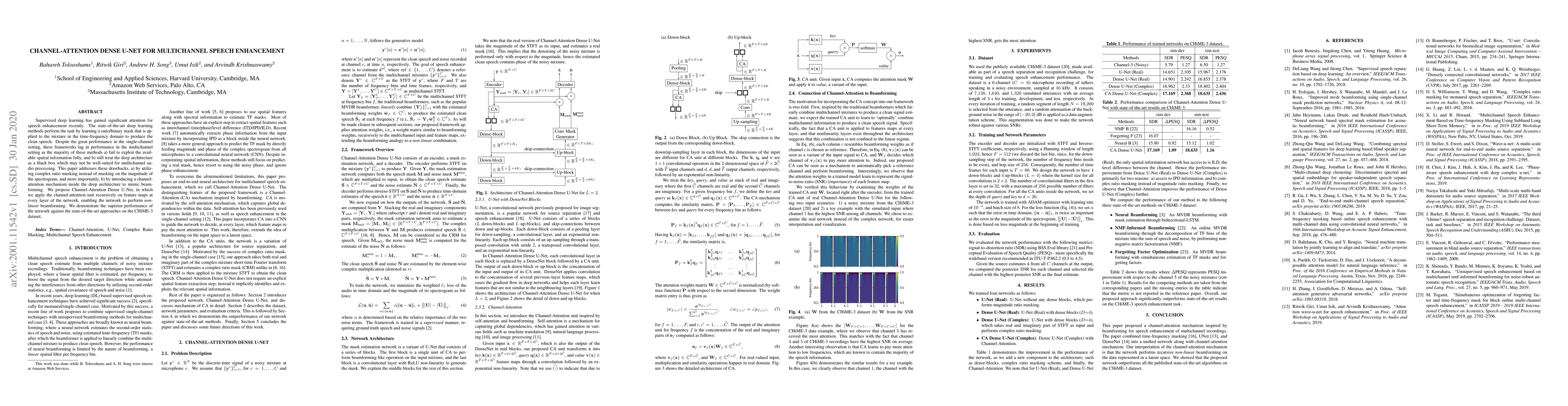 This paper proposes a Channel-Attention Dense U-Net for multichannel speech enhancement, addressing the limitations of existing methods by utilizing complex ratio masking and introducing a channel-attention mechanism to exploit spatial information and perform non-linear beamforming, achieving superior performance on the CHiME-3 dataset.