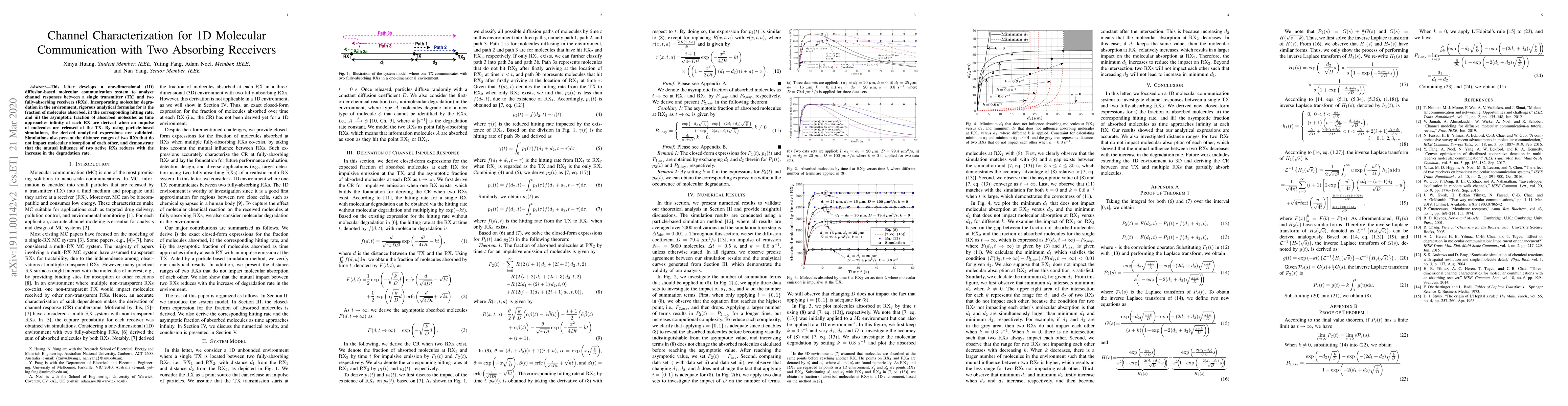 Researchers developed a 1D molecular communication system with two fully-absorbing receivers to analyze channel responses, deriving analytical formulas for molecule absorption rates and validating them through simulations.
