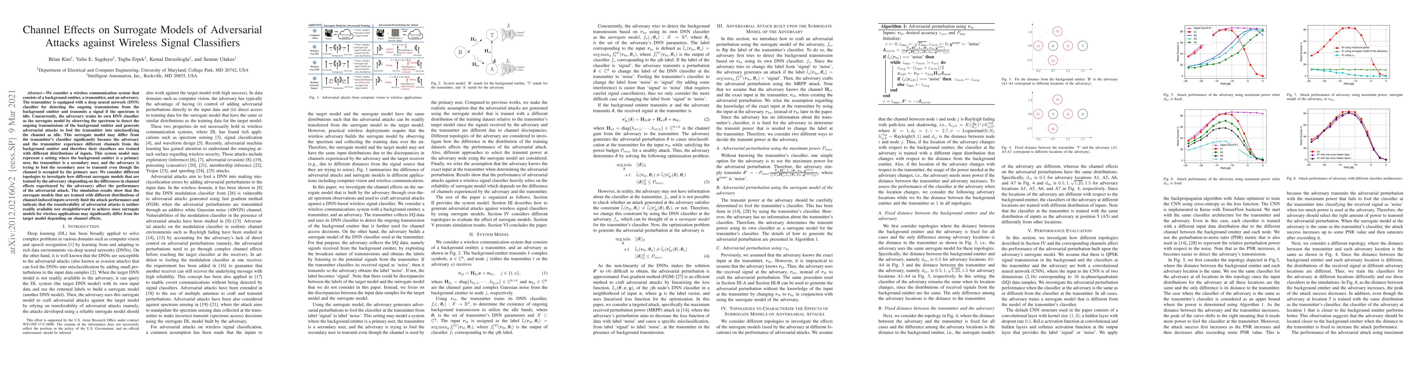 We consider a wireless communication system that consists of a background emitter, a transmitter, and an adversary. The transmitter is equipped with a deep neural network (DNN) classifier for detecting the ongoing transmissions from the background emitter and transmits a signal if the spectrum is idle. Concurrently, the adversary trains its own DNN classifier as the surrogate model by observing the spectrum to detect the ongoing transmissions of the background emitter and generate adversarial attacks to fool the transmitter into misclassifying the channel as idle. This surrogate model may differ from the transmitter's classifier significantly because the adversary and the transmitter experience different channels from the background emitter and therefore their classifiers are trained with different distributions of inputs. This system model may represent a setting where the background emitter is a primary user, the transmitter is a secondary user, and the adversary is trying to fool the secondary user to transmit even though the channel is occupied by the primary user. We consider different topologies to investigate how different surrogate models that are trained by the adversary (depending on the differences in channel effects experienced by the adversary) affect the performance of the adversarial attack. The simulation results show that the surrogate models that are trained with different distributions of channel-induced inputs severely limit the attack performance and indicate that the transferability of adversarial attacks is neither readily available nor straightforward to achieve since surrogate models for wireless applications may significantly differ from the target model depending on channel effects.