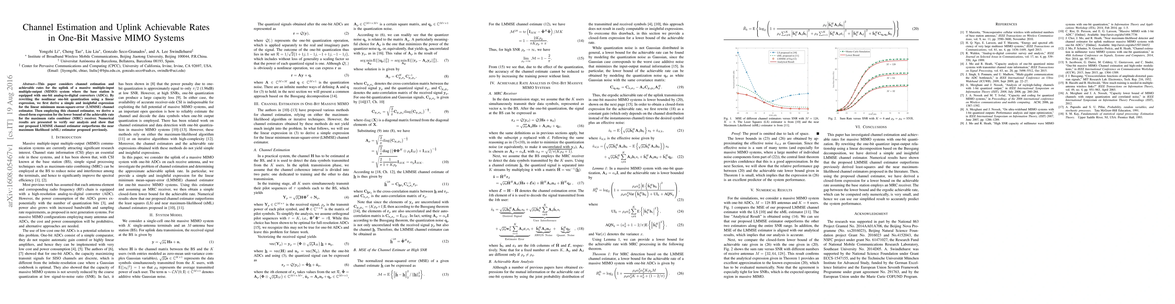 This paper develops a linear minimum mean-square-error (LMMSE) channel estimator for one-bit massive MIMO systems and derives a closed-form expression for the achievable uplink rate. Numerical results demonstrate that the proposed LMMSE estimator outperforms the previous near maximum likelihood estimator.