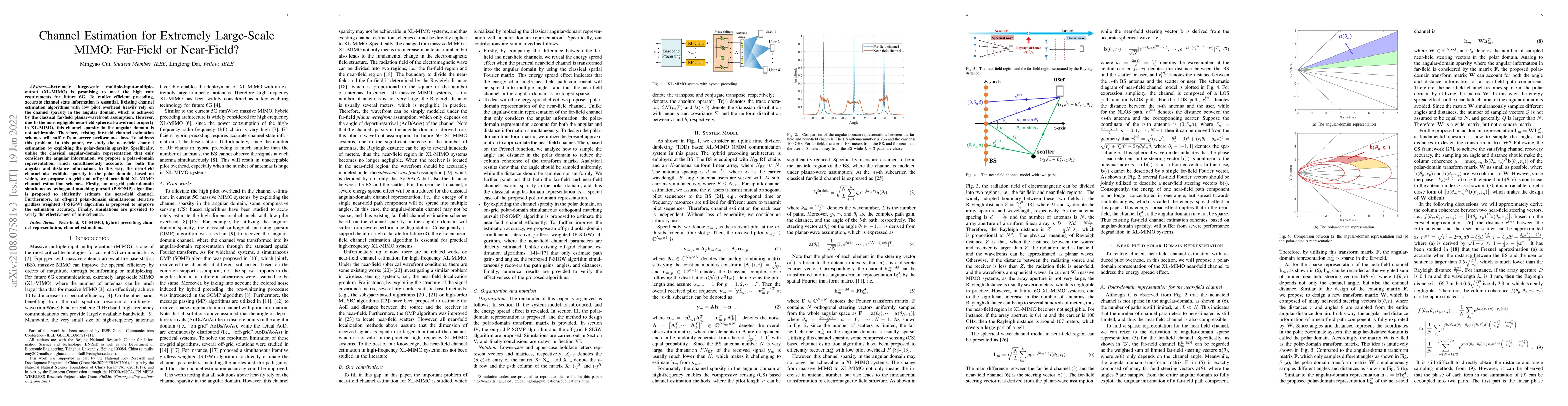 This paper investigates near-field channel estimation for extremely large-scale MIMO (XL-MIMO) systems, proposing new polar-domain representations that account for both angle and distance information to overcome the limitations of traditional far-field assumptions. The paper introduces on-grid and off-grid estimation algorithms to enhance the accuracy of channel state information for efficient hybrid precoding.