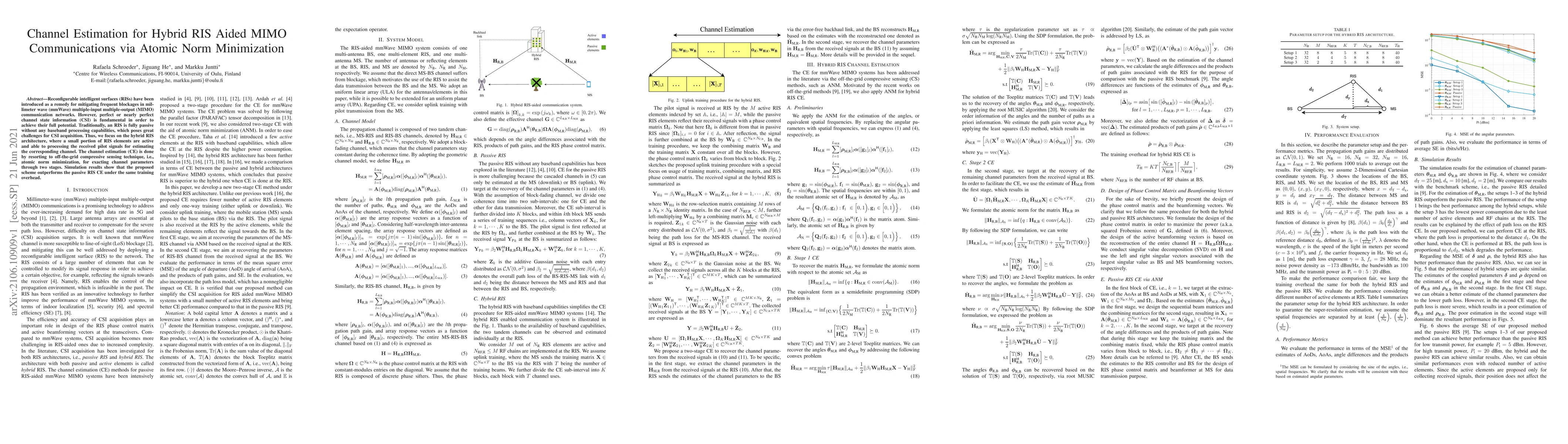 This paper proposes a hybrid RIS architecture with active elements for channel estimation in mmWave MIMO communications, utilizing atomic norm minimization for precise channel parameter estimation. Simulation results demonstrate superior performance over passive RIS channel estimation methods.