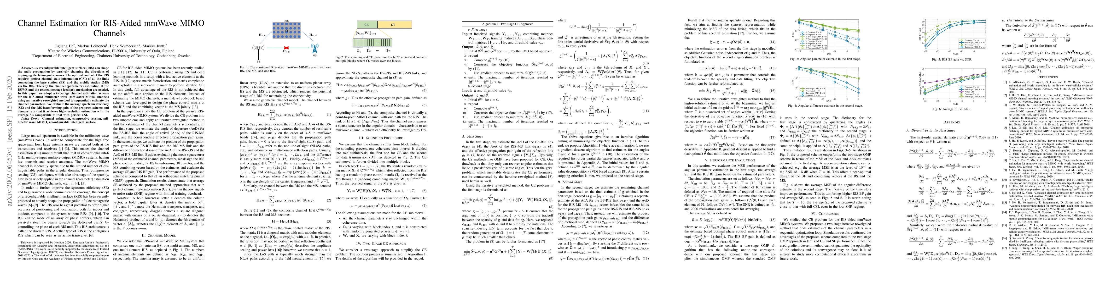 A reconfigurable intelligent surface (RIS) can shape the radio propagation by passively changing the directions of impinging electromagnetic waves. The optimal control of the RIS requires perfect channel state information (CSI) of all the links connecting the base station (BS) and the mobile station (MS) via the RIS. Thereby the channel (parameter) estimation at the BS/MS and the related message feedback mechanism are needed. In this paper, we adopt a two-stage channel estimation scheme for the RIS-aided millimeter wave (mmWave) MIMO channels using an iterative reweighted method to sequentially estimate the channel parameters. We evaluate the average spectrum efficiency (SE) and the RIS beamforming gain of the proposed scheme and demonstrate that it achieves high-resolution estimation with the average SE comparable to that with perfect CSI.