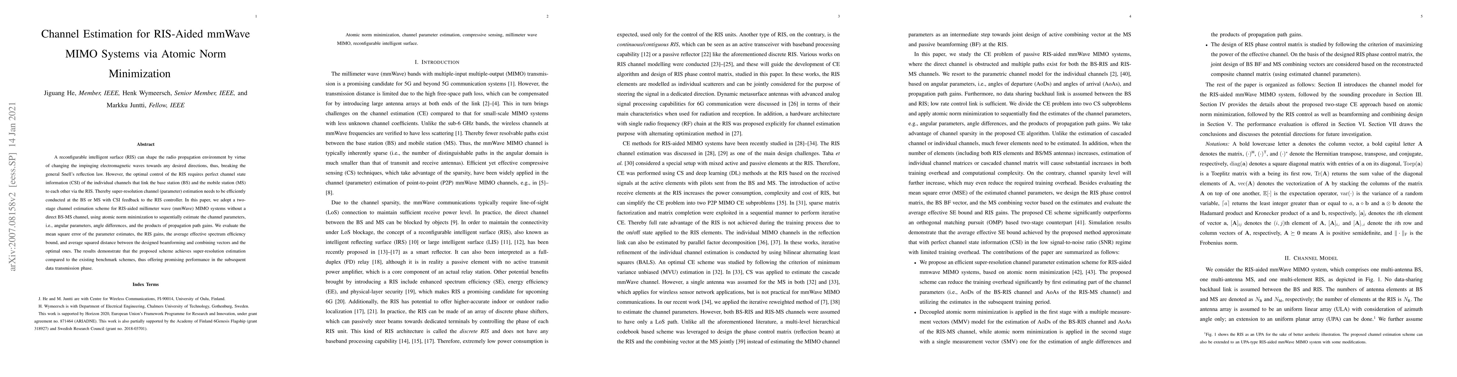 This paper proposes a two-stage channel estimation scheme for RIS-aided mmWave MIMO systems using atomic norm minimization to achieve super-resolution estimation of channel parameters. The method demonstrates superior performance in terms of mean square error and spectrum efficiency compared to existing benchmarks.