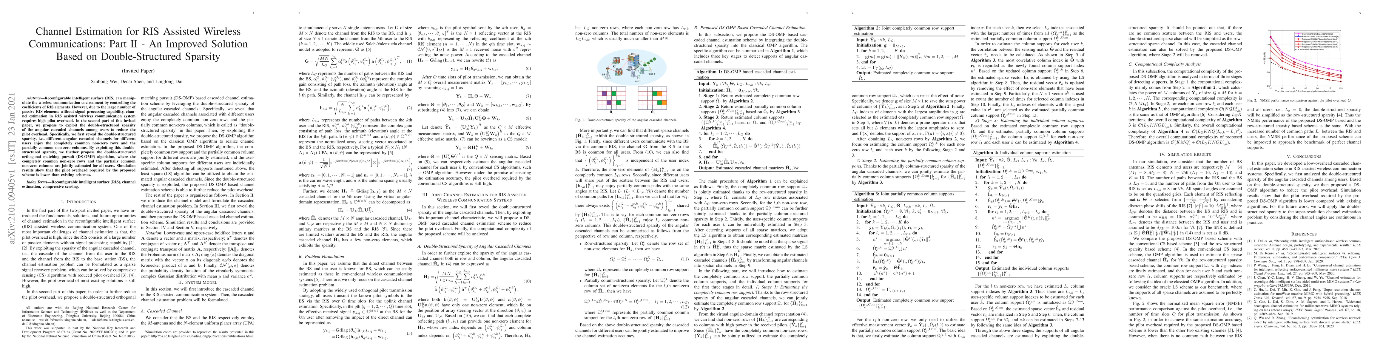 Reconfigurable intelligent surface (RIS) can manipulate the wireless communication environment by controlling the coefficients of RIS elements. However, due to the large number of passive RIS elements without signal processing capability, channel estimation in RIS assisted wireless communication system requires high pilot overhead. In the second part of this invited paper, we propose to exploit the double-structured sparsity of the angular cascaded channels among users to reduce the pilot overhead. Specifically, we first reveal the double-structured sparsity, i.e., different angular cascaded channels for different users enjoy the completely common non-zero rows and the partially common non-zero columns. By exploiting this double-structured sparsity, we further propose the double-structured orthogonal matching pursuit (DS-OMP) algorithm, where the completely common non-zero rows and the partially common non-zero columns are jointly estimated for all users. Simulation results show that the pilot overhead required by the proposed scheme is lower than existing schemes.