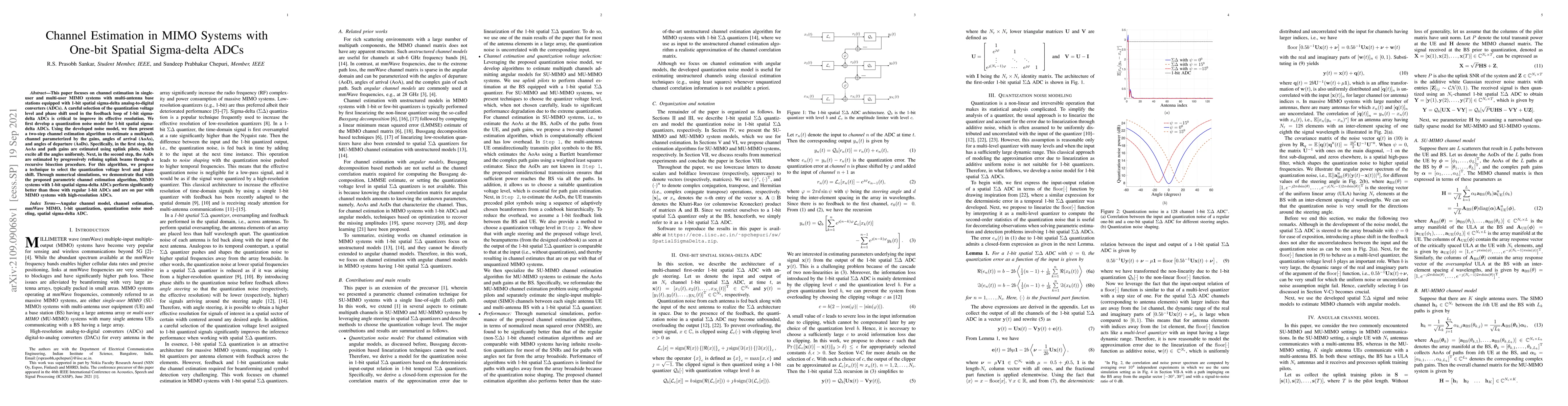 This paper proposes a two-step channel estimation algorithm for MIMO systems using 1-bit spatial sigma-delta ADCs, optimizing quantization voltage and phase shift to improve effective resolution. The method estimates angles of arrival and departure, demonstrating superior performance compared to regular 1-bit ADCs and high-resolution alternatives.