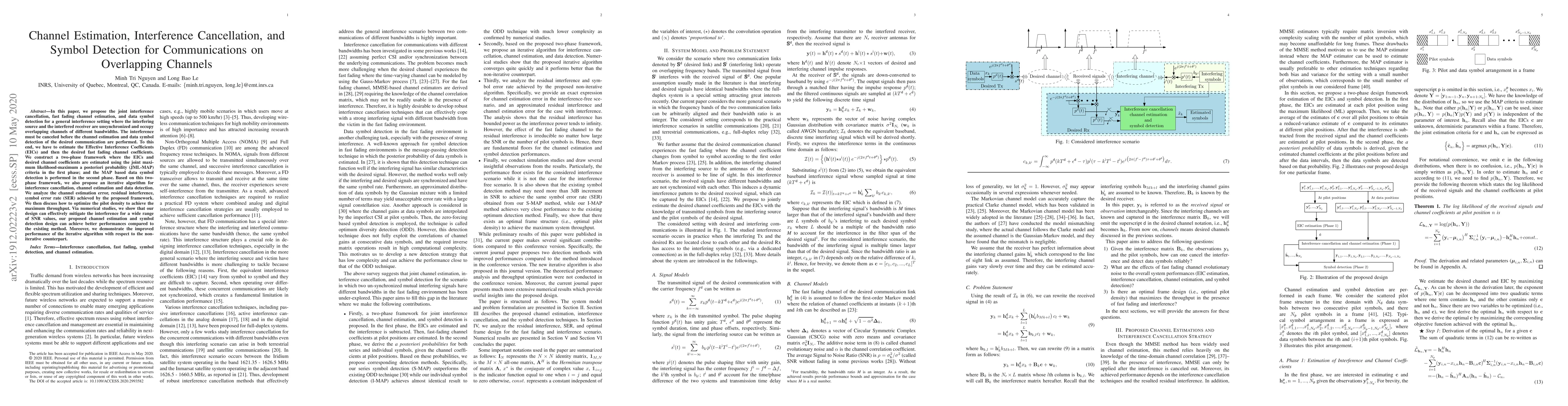 This paper proposes a two-phase framework for joint interference cancellation, fast fading channel estimation, and data symbol detection in unsynchronized overlapping channels. The iterative algorithm effectively mitigates interference and achieves better performance compared to existing methods.