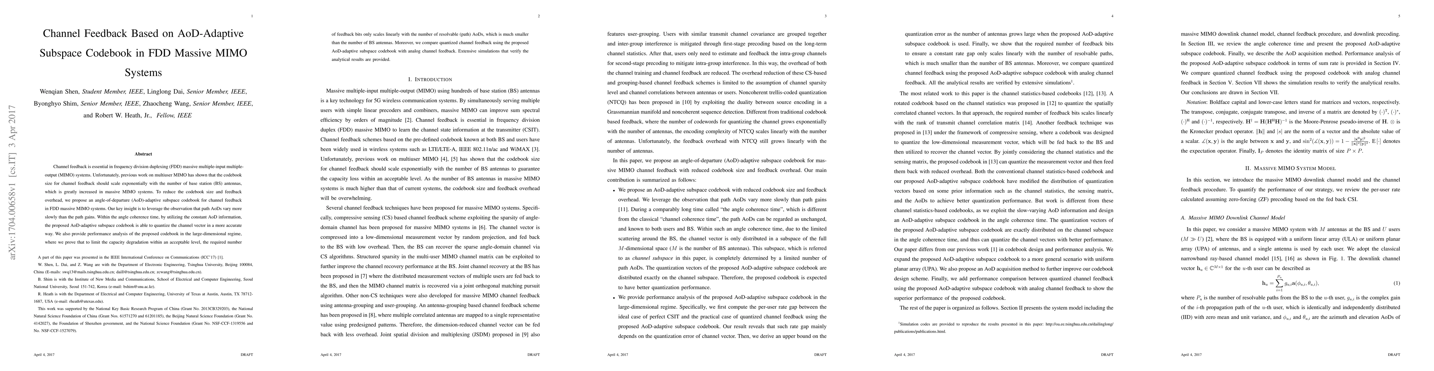 This paper proposes an angle-of-departure (AoD)-adaptive subspace codebook to reduce channel feedback overhead in FDD massive MIMO systems. By leveraging the slow variation of AoDs, the codebook quantizes the channel vector more accurately, requiring feedback bits that scale linearly with the number of resolvable AoDs rather than the number of antennas.