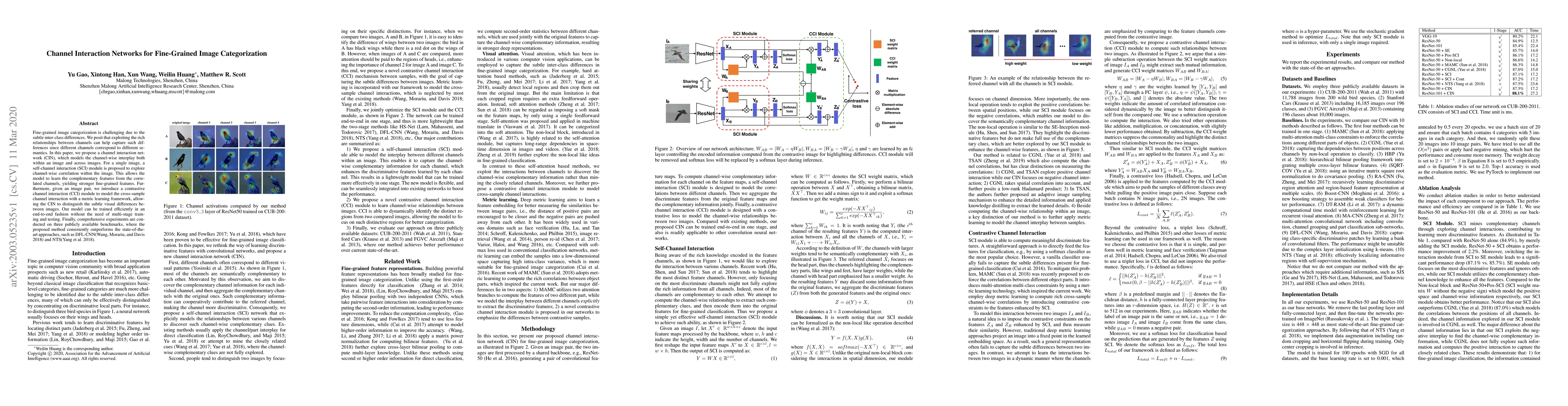 This research introduces a channel interaction network (CIN) to enhance fine-grained image categorization by modeling relationships between channels to capture subtle inter-class differences. The proposed self-channel interaction (SCI) module and contrastive channel interaction (CCI) module enable the model to learn complementary features and distinguish fine-grained visual differences efficiently. Experimental results show consistent outperformance on three benchmarks.