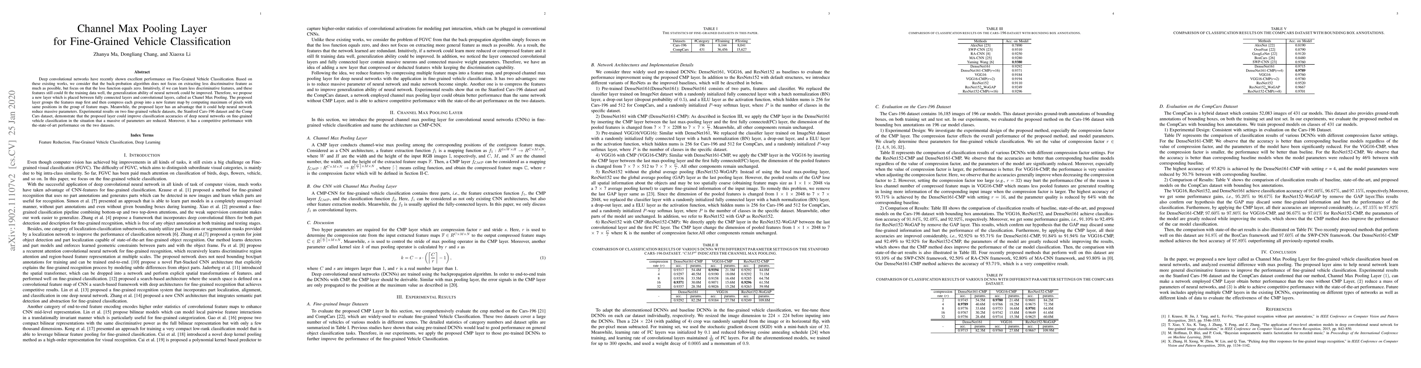 This paper proposes a Channel Max Pooling layer to enhance fine-grained vehicle classification in deep convolutional networks. The layer groups and compresses feature maps by computing maximum values, improving generalization and reducing parameters while maintaining competitive accuracy on the Stanford Cars and Comp Cars datasets.