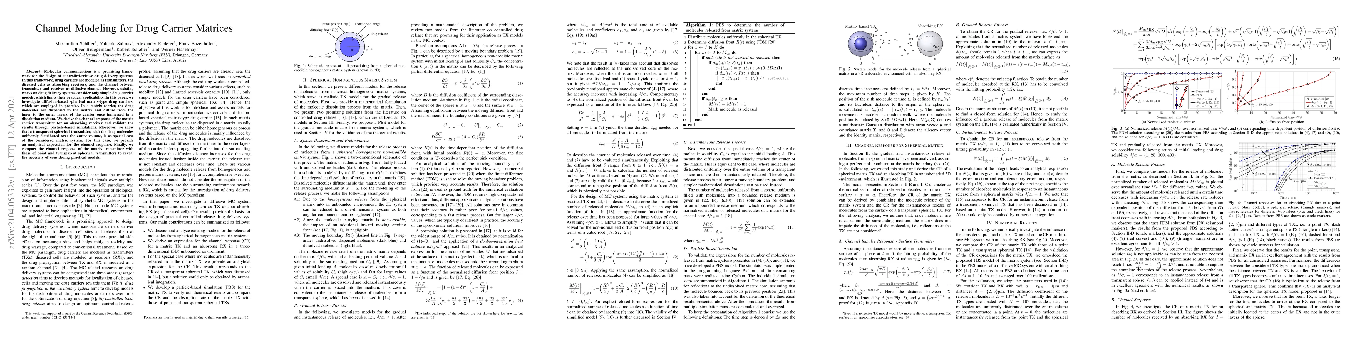 Molecular communications is a promising framework for the design of controlled-release drug delivery systems. In this framework, drug carriers are modeled as transmitters, the diseased cells as absorbing receivers, and the channel between transmitter and receiver as diffusive channel. However, existing works on drug delivery systems consider only simple drug carrier models, which limits their practical applicability. In this paper, we investigate diffusion-based spherical matrix-type drug carriers, which are employed in practice. In a matrix carrier, the drug molecules are dispersed in the matrix and diffuse from the inner to the outer layers of the carrier once immersed in a dissolution medium. We derive the channel response of the matrix carrier transmitter for an absorbing receiver and validate the results through particle-based simulations. Moreover, we show that a transparent spherical transmitter, with the drug molecules uniformly distributed over the entire volume, is as special case of the considered matrix system. For this case, we provide an analytical expression for the channel response. Finally, we compare the channel response of the matrix transmitter with those of point and transparent spherical transmitters to reveal the necessity of considering practical models.