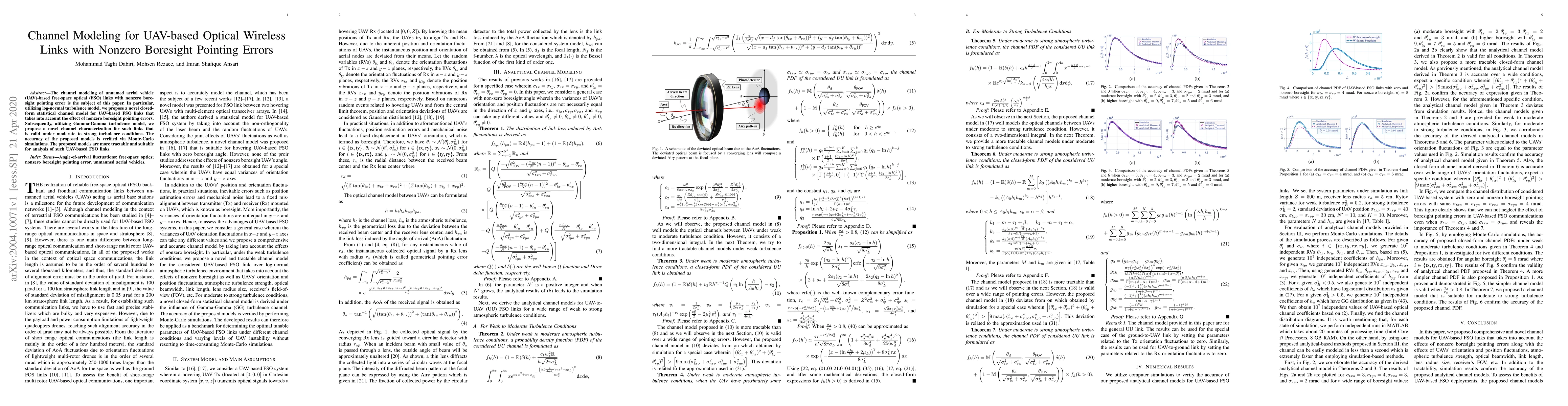 This paper proposes novel closed-form statistical channel models for UAV-based free-space optical links, accounting for nonzero boresight pointing errors under log-normal and Gamma-Gamma turbulence conditions. The models are validated through Monte-Carlo simulations and are deemed more practical for link analysis.