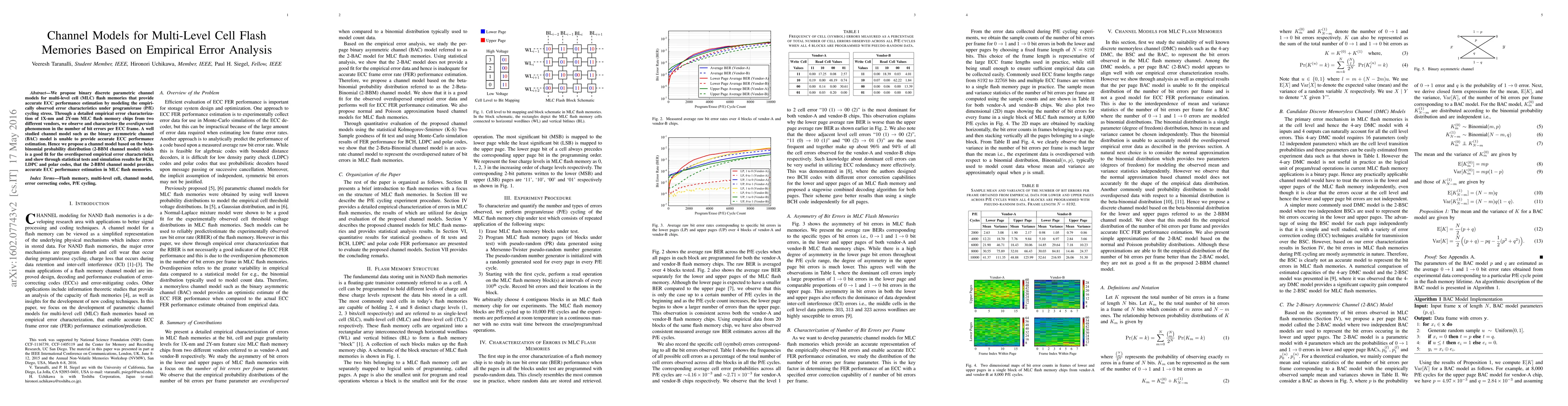 This paper proposes binary discrete parametric channel models for multi-level cell (MLC) flash memories, specifically a beta-binomial model, to accurately estimate ECC performance under program/erase cycling stress. The study shows that traditional models like the binary asymmetric channel are inadequate, and the new model provides better estimation for error-correcting codes.