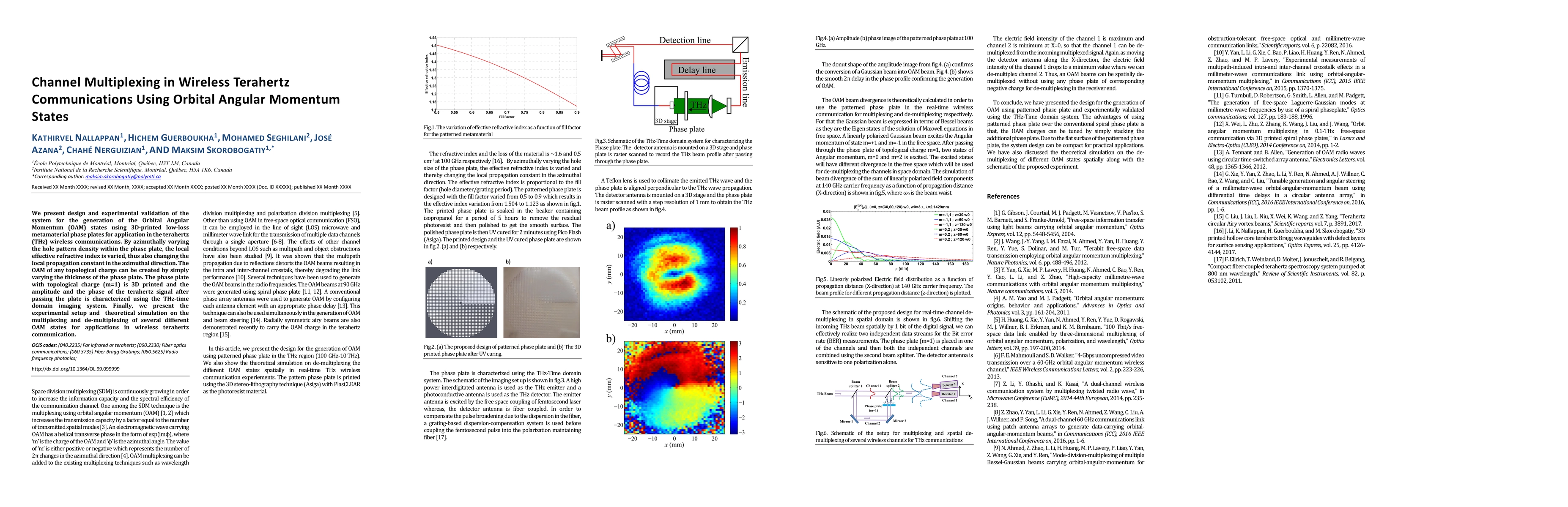 This paper details the design and experimental validation of a system using 3D-printed metamaterial phase plates to generate Orbital Angular Momentum (OAM) states for terahertz wireless communications. The study demonstrates the multiplexing and de-multiplexing of various OAM states, showcasing potential advancements in channel capacity for terahertz communications.
