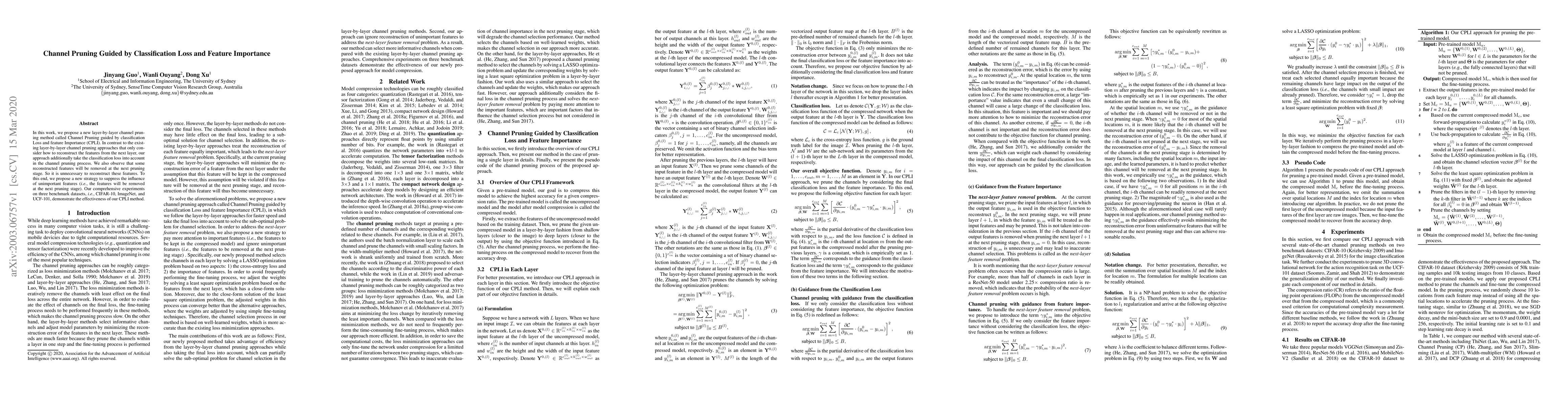 In this work, we propose a new layer-by-layer channel pruning method called Channel Pruning guided by classification Loss and feature Importance (CPLI). In contrast to the existing layer-by-layer channel pruning approaches that only consider how to reconstruct the features from the next layer, our approach additionally take the classification loss into account in the channel pruning process. We also observe that some reconstructed features will be removed at the next pruning stage. So it is unnecessary to reconstruct these features. To this end, we propose a new strategy to suppress the influence of unimportant features (i.e., the features will be removed at the next pruning stage). Our comprehensive experiments on three benchmark datasets, i.e., CIFAR-10, ImageNet, and UCF-101, demonstrate the effectiveness of our CPLI method.