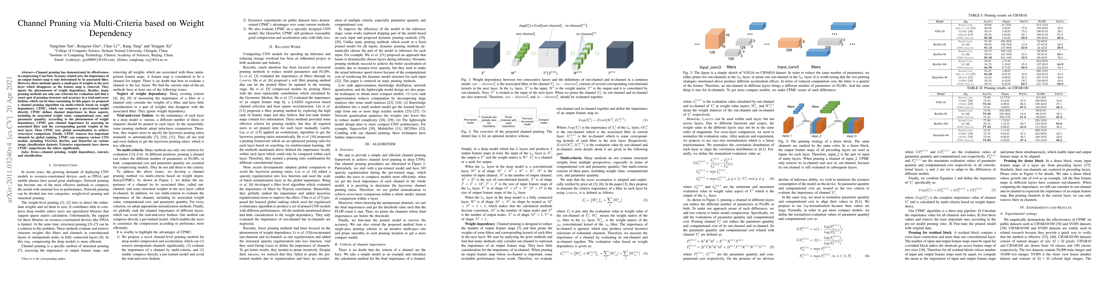 This research introduces a novel channel pruning method called CPMC, which considers weight dependency and uses multiple criteria to evaluate channel importance. Unlike existing methods, CPMC assesses the associated filter and corresponding partial weights in the next layer, employing global normalization for cross-layer comparison and ranking to effectively compress various CNN models. Experimental results demonstrate that CPMC significantly outperforms other pruning methods.