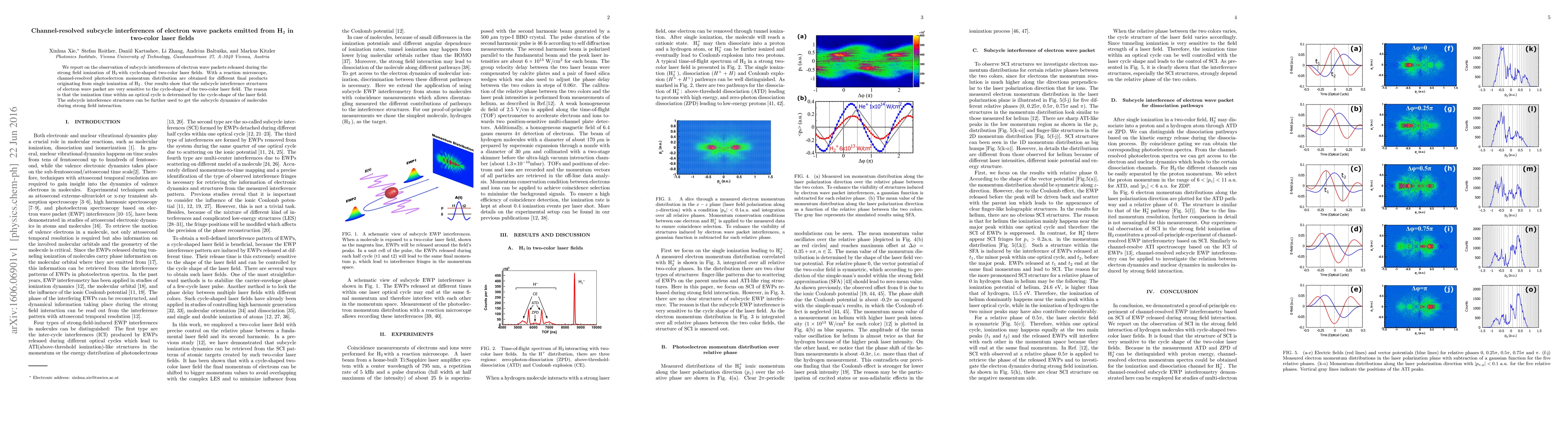 This paper reports on the observation of subcycle interferences in electron wave packets from H$_2$ ionized by two-color laser fields, revealing sensitivity to the laser cycle-shape. The study uses a reaction microscope to obtain channel-resolved photoelectron momentum distributions, demonstrating that the ionization time within an optical cycle is influenced by the laser's cycle-shape, providing insights into subcycle molecular dynamics.
