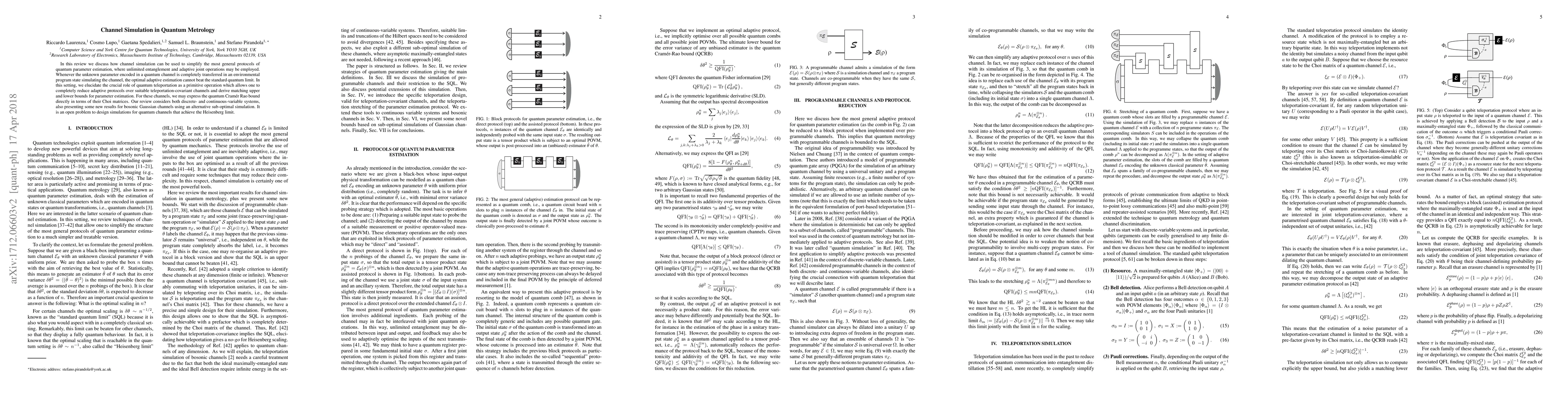 A review discusses how channel simulation can simplify quantum parameter estimation protocols, highlighting the role of quantum teleportation and providing new results for bosonic Gaussian channels. It sets the stage for future research on designing simulations that achieve the Heisenberg limit.