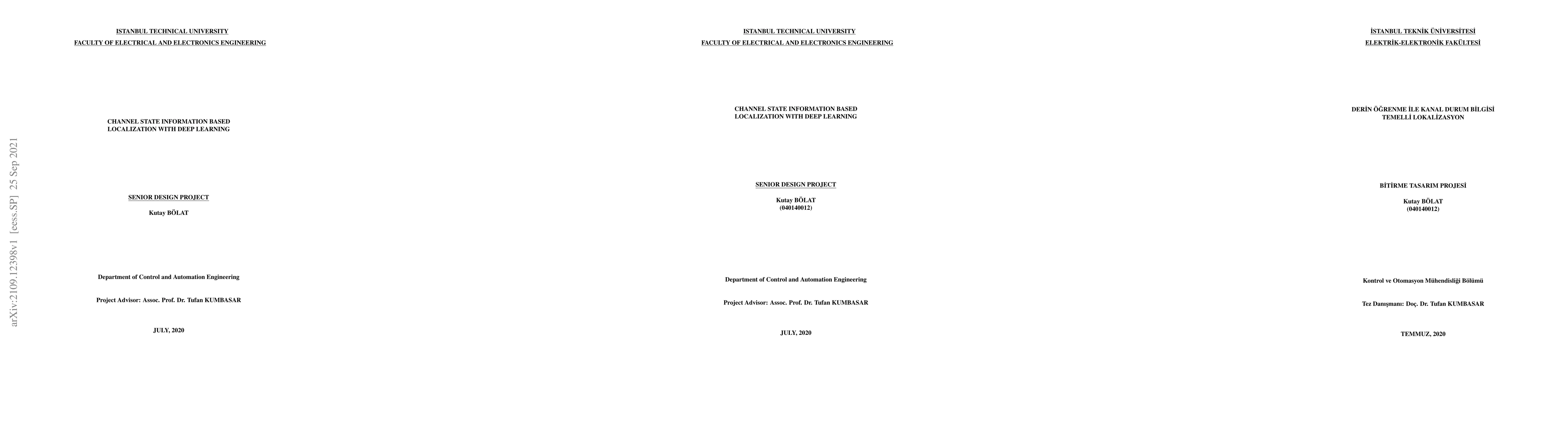 Localization is one of the most important problems in various fields such as robotics and wireless communications. For instance, Unmanned Aerial Vehicles (UAVs) require the information of the position precisely for an adequate control strategy. This problem is handled very efficiently with integrated GPS units for outdoor applications. However, indoor applications require special treatment due to the unavailability of GPS signals. Another aspect of mobile robots such as UAVs is that there is constant wireless communication between the mobile robot and a computational unit. This communication is mainly done for obtaining telemetry information or computation of control actions directly. The responsible integrated units for this transmission are commercial wireless communication chipsets. These units on the receiver side are responsible for getting rid of the diverse effects of the communication channel with various mathematical techniques. These techniques mainly require the Channel State Information (CSI) of the current channel to compensate the channel itself. After the compensation, the chipset has nothing to do with CSI. However, the locations of both the transmitter and receiver have a direct impact on CSI. Even though CSI contains such rich information about the environment, the accessibility of these data is blocked by the commercial wireless chipsets since they are manufactured to provide only the processed information data bits to the user. However, with the IEEE 802.11n standardization, certain chipsets provide access to CSI. Therefore, CSI data became processible and integrable to localization schemes. In this project, a test environment was constructed for the localization task. Two routers with proper chipsets were assigned as transmitter and receiver. They were operationalized for the CSI data collection. Lastly, these data were processed with various deep learning models.
